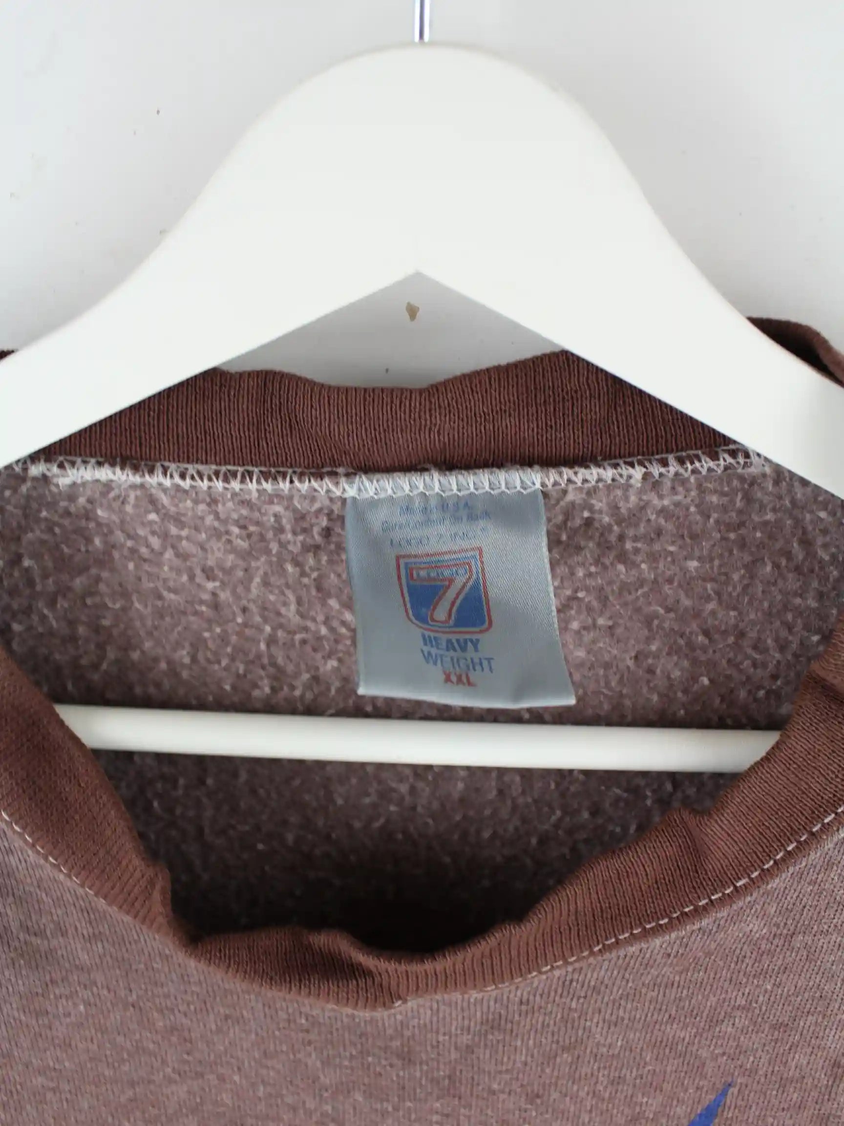 Brauner Sweater der Brand Logo 7 aus den 90'ern in Größe XXL. Er ist aus einer Baumwollmischung produziert und in gutem Zustand im Bestand. Mit schickem Champions Print.