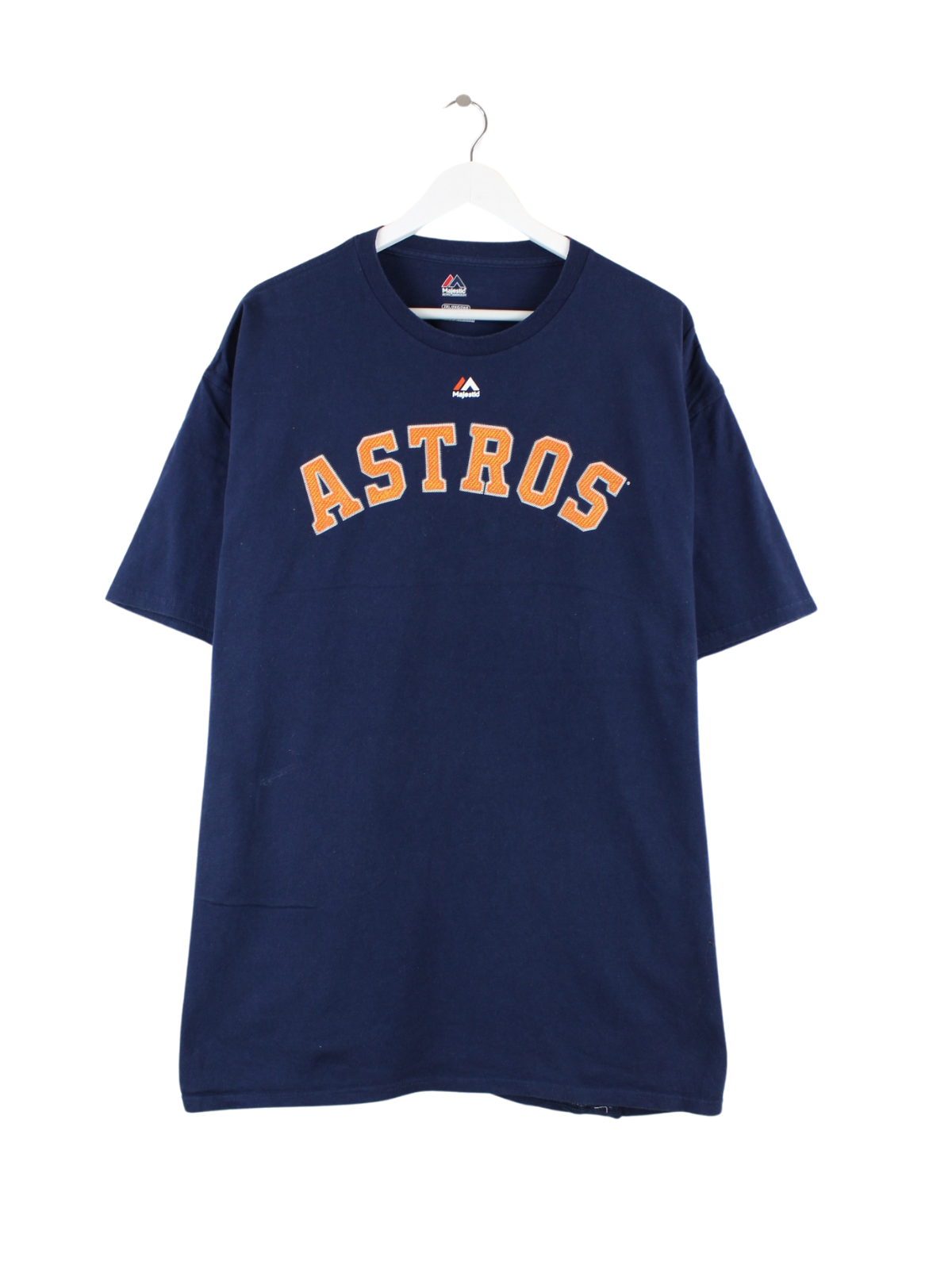 T-Shirt von Majestic in Größe XXL. Es ist aus Baumwolle angefertigt und in Blau in Stock. Mit tollem Astros Print.
