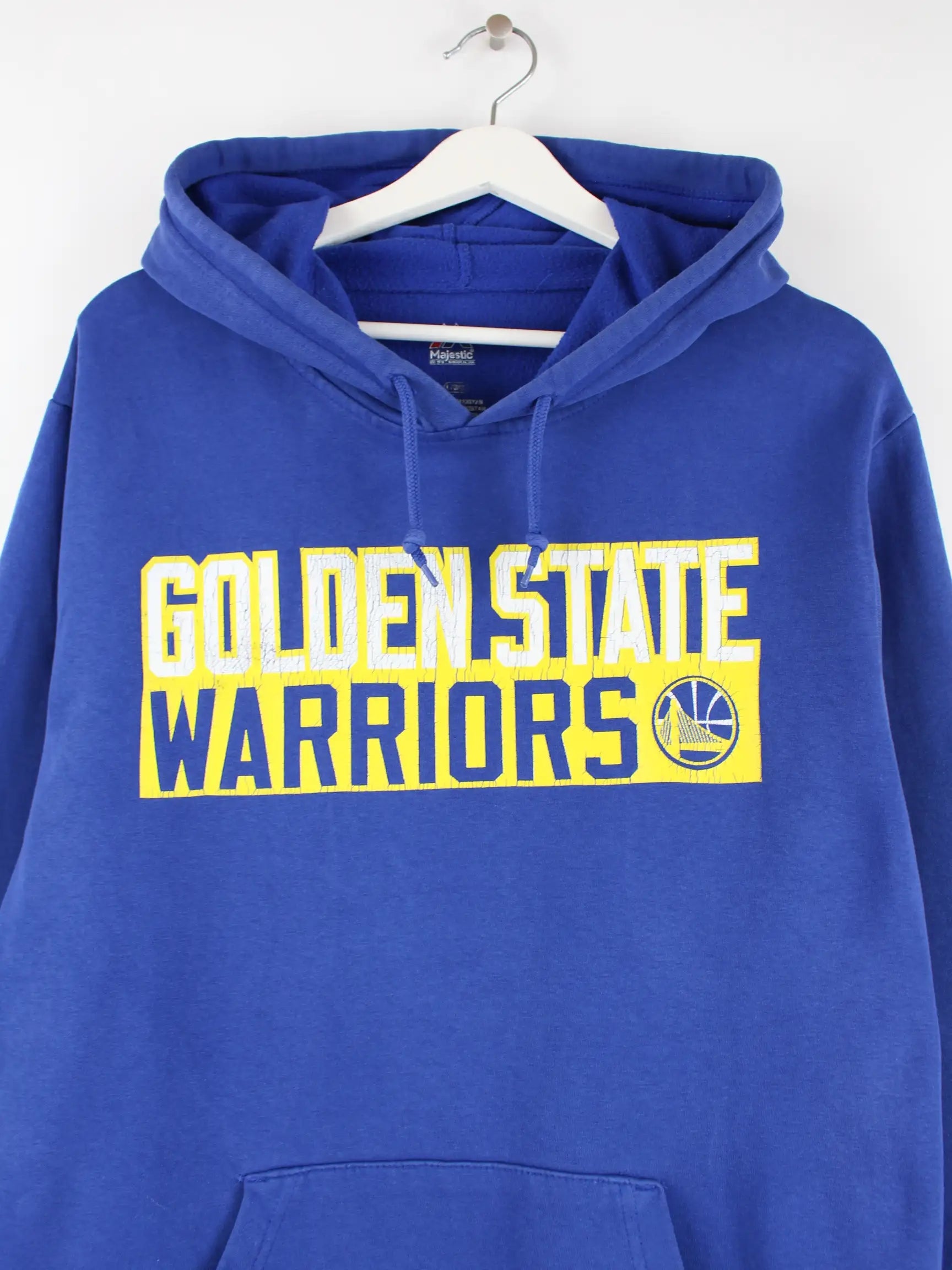 Hoodie aus dem Hause Majestic in Größe L. Er ist aus einer Baumwollmischung gemacht und in Blau lieferbar. Mit tollem Warriors Print.