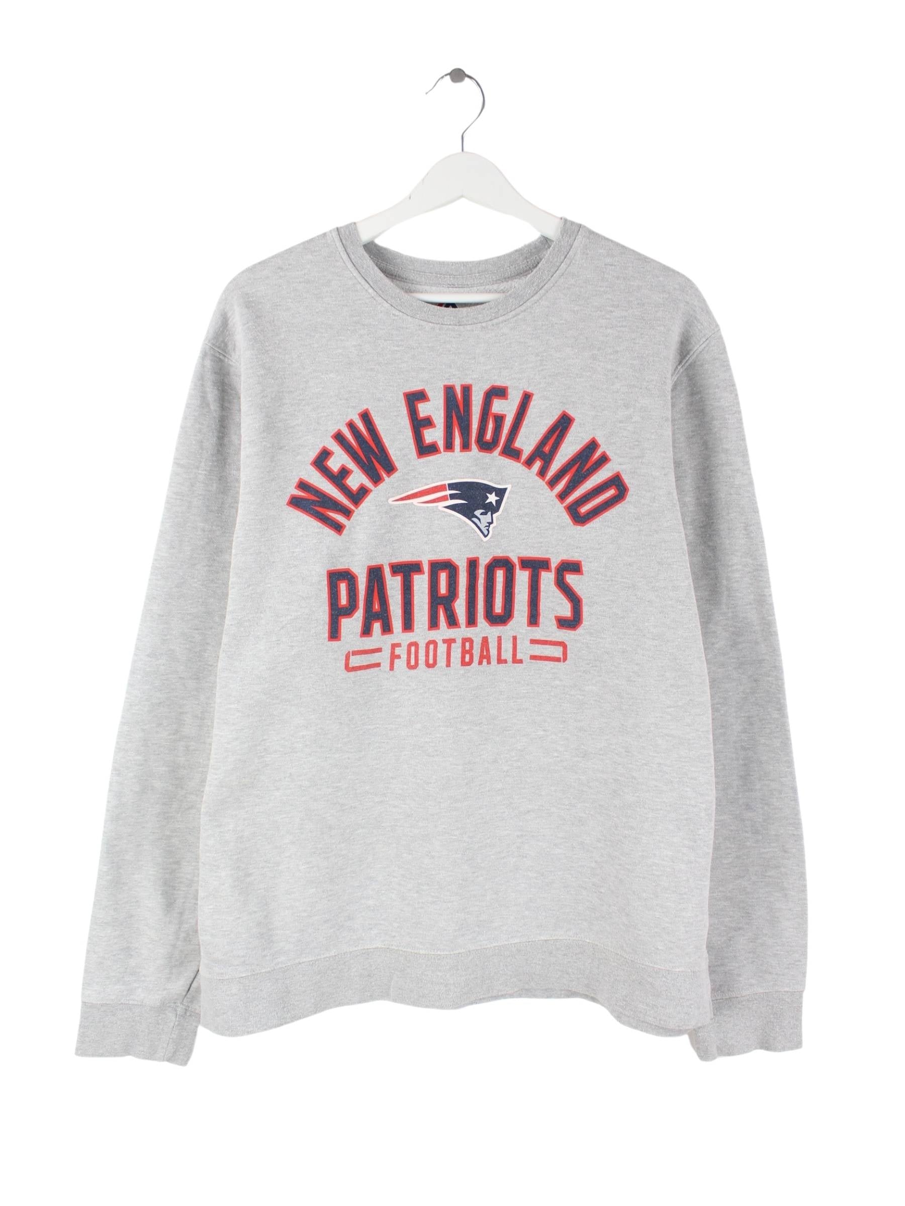 Grauer Sweater vom Label Majestic in Größe XL. Er ist aus einer Baumwollmischung hergestellt und in sehr gutem Zustand auf Lager. Mit schickem Patriots Print.