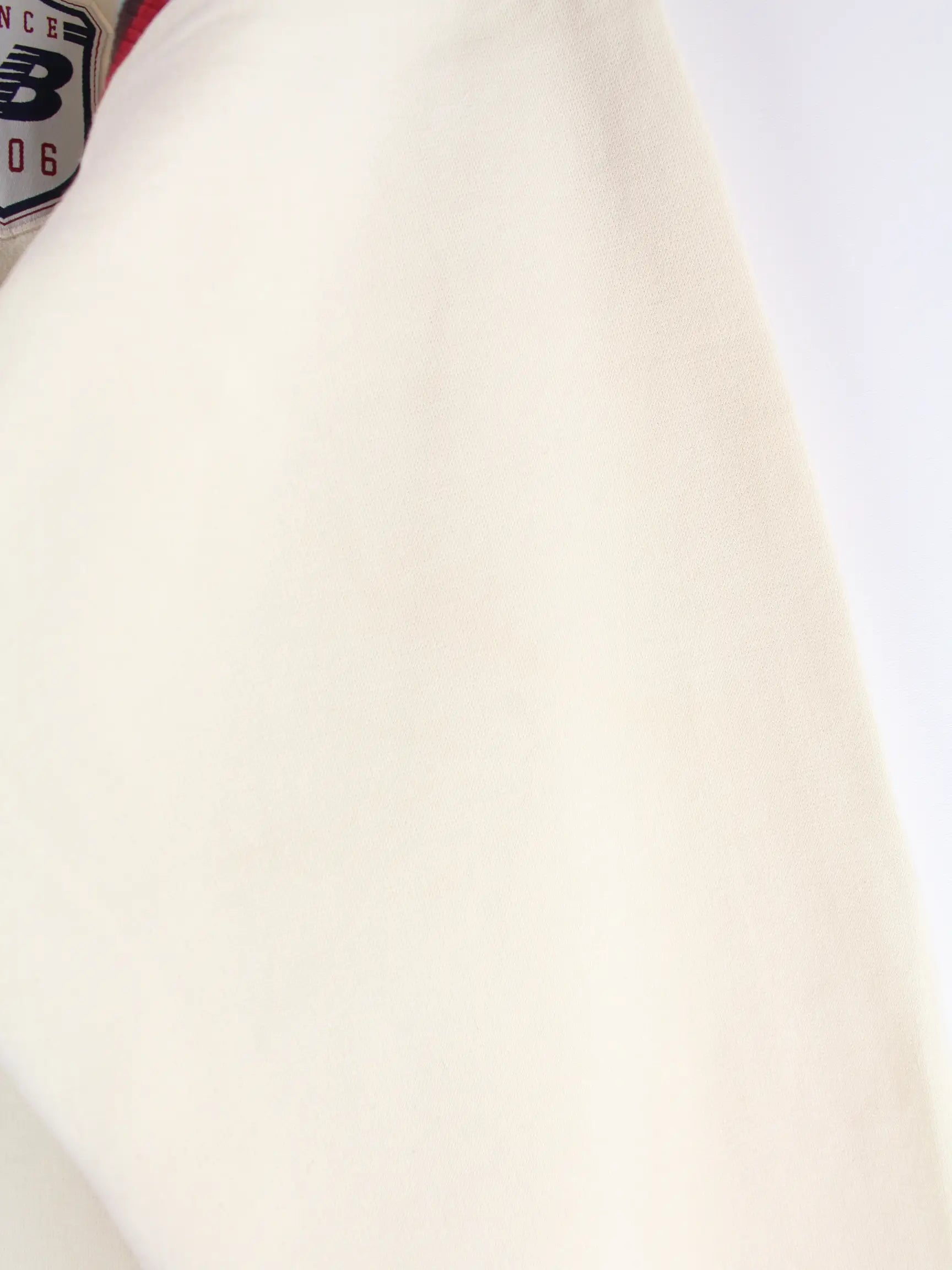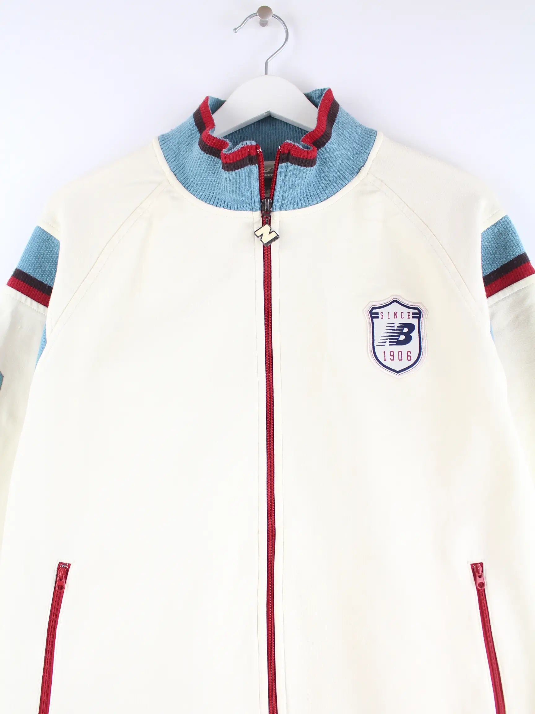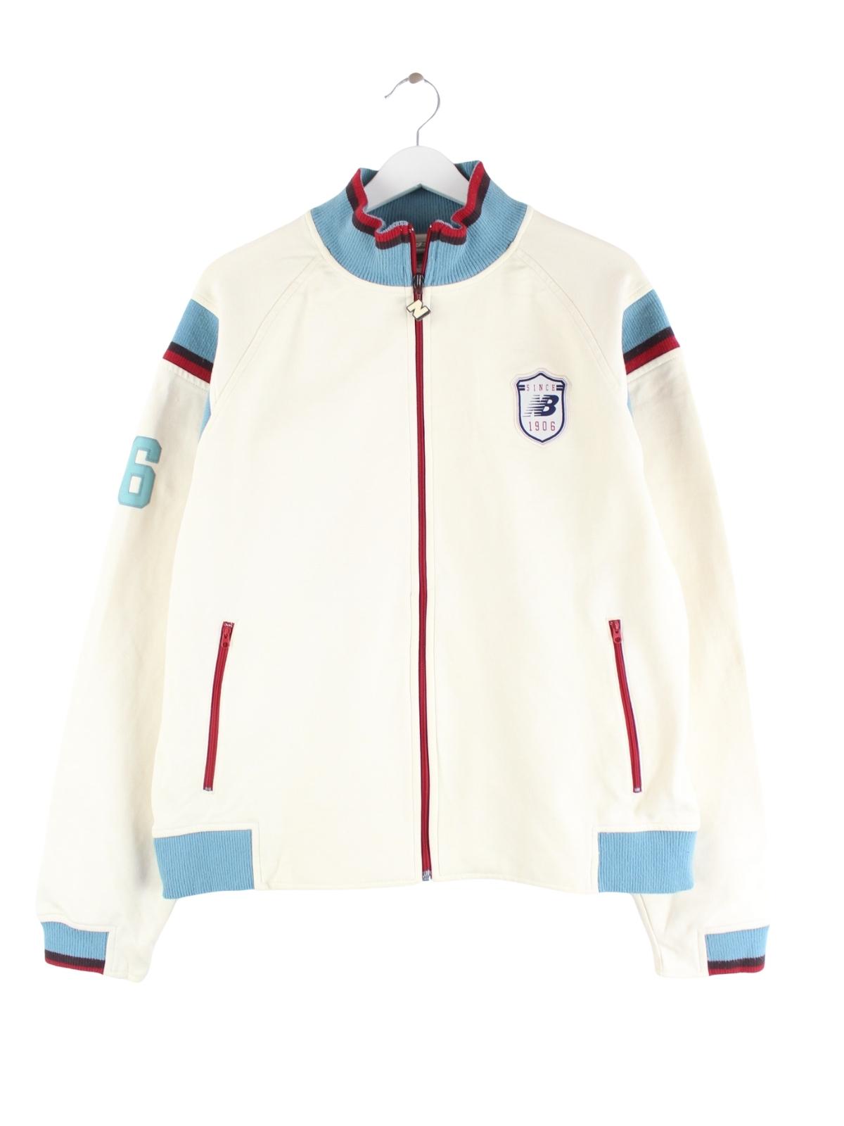 Beigefarbene Sweatjacke der Marke New Balance in Größe M. Sie ist aus einer Baumwollmischung hergestellt und in gutem Zustand bei uns vorrätig.