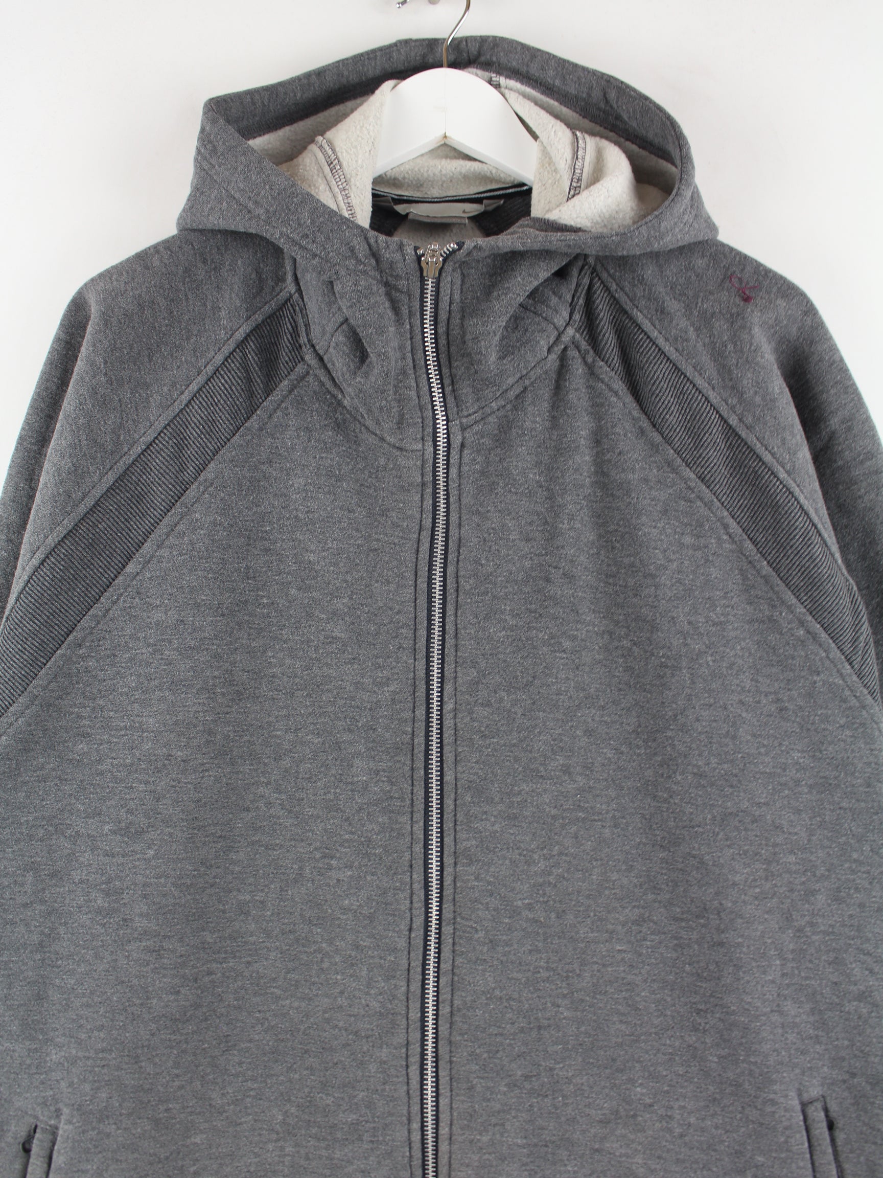 Grauer Hoodie mit gestickten Motiven und durchgehendem Reißverschluß aus dem Hause Nike in Größe XL. Er ist aus einer Baumwollmischung hergestellt und in sehr gutem Zustand im Angebot.