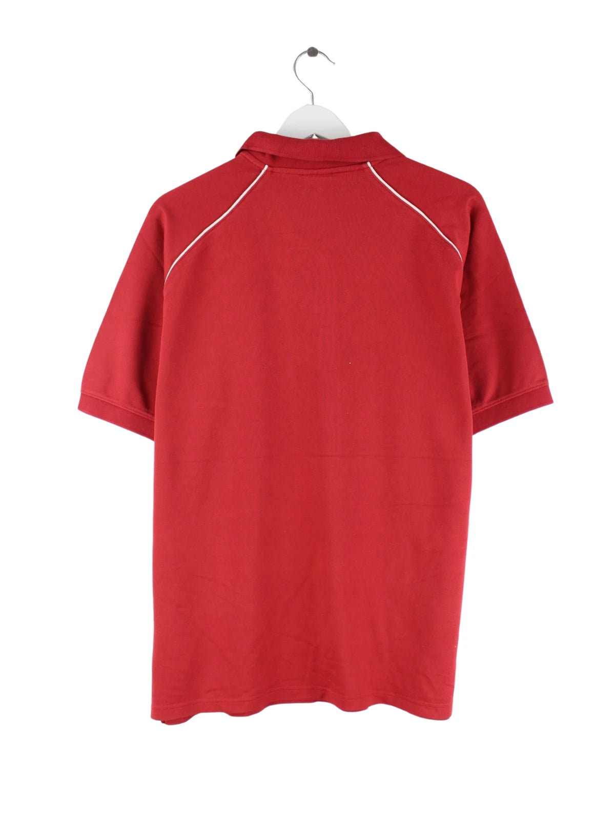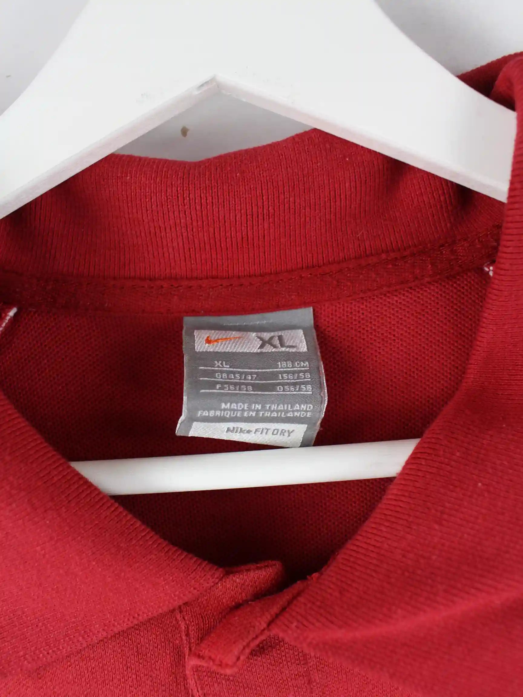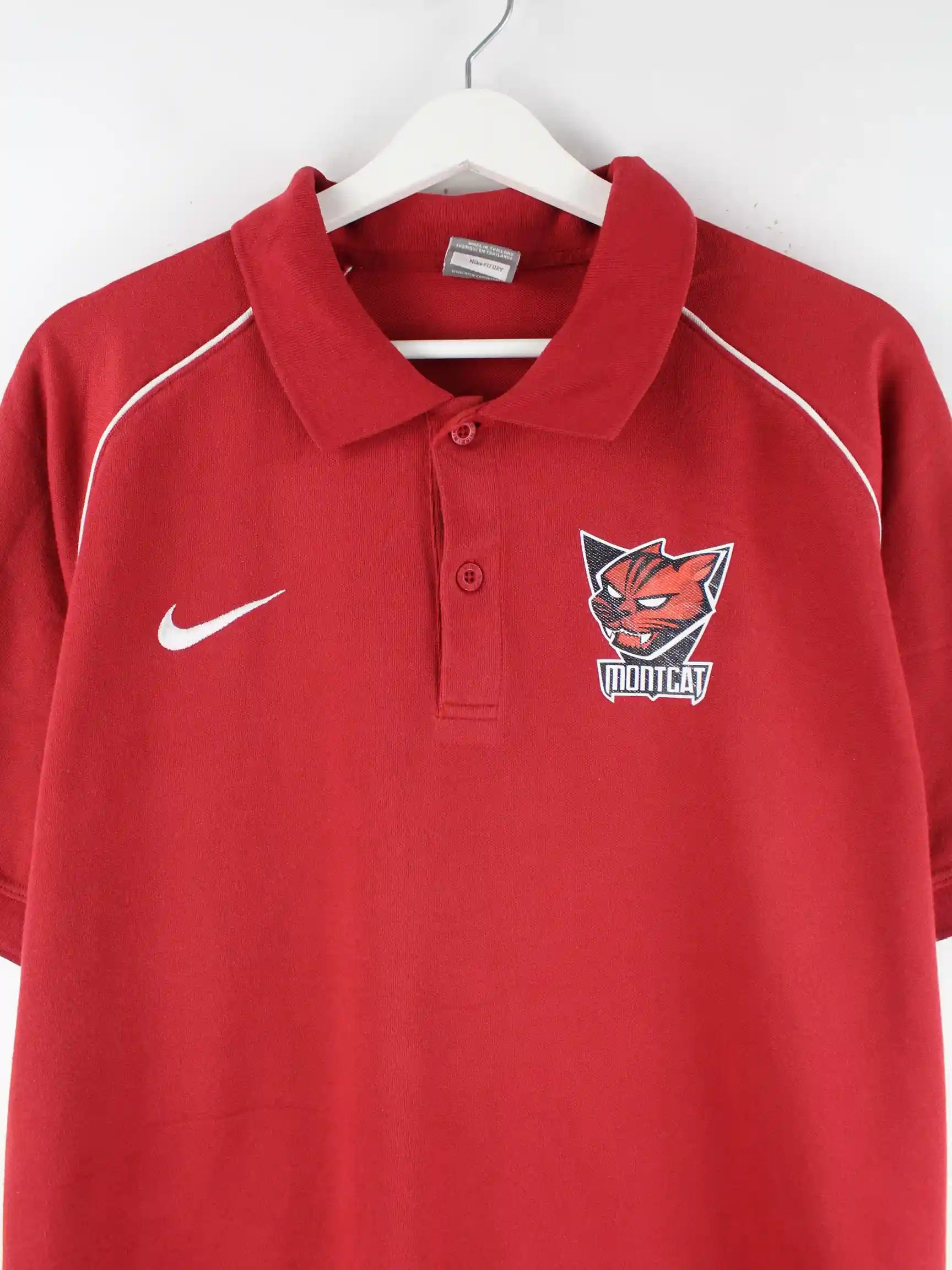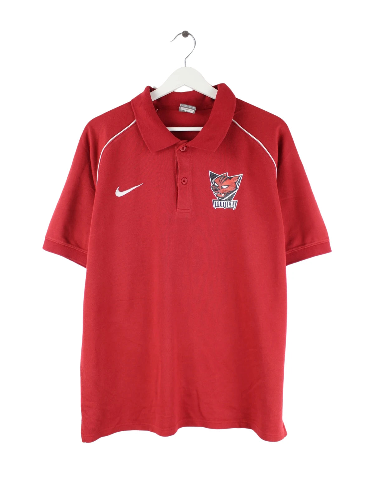 Rotes Poloshirt vom Brand Nike in Größe XL. Es ist aus Baumwolle und in sehr gutem Zustand bei uns vorrätig. Mit tollem Montcat Print.
