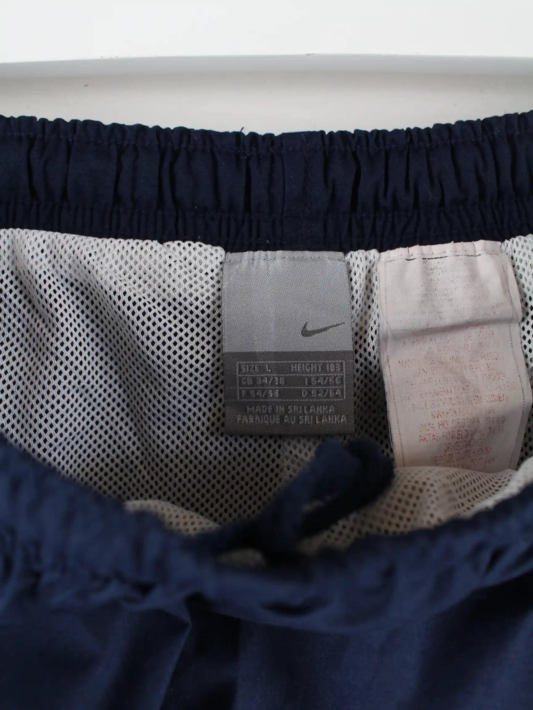 Blaue Track Pants vom Brand Nike in Größe L. Sie sind aus Synthetik gemacht und in sehr gutem Zustand lieferbar.