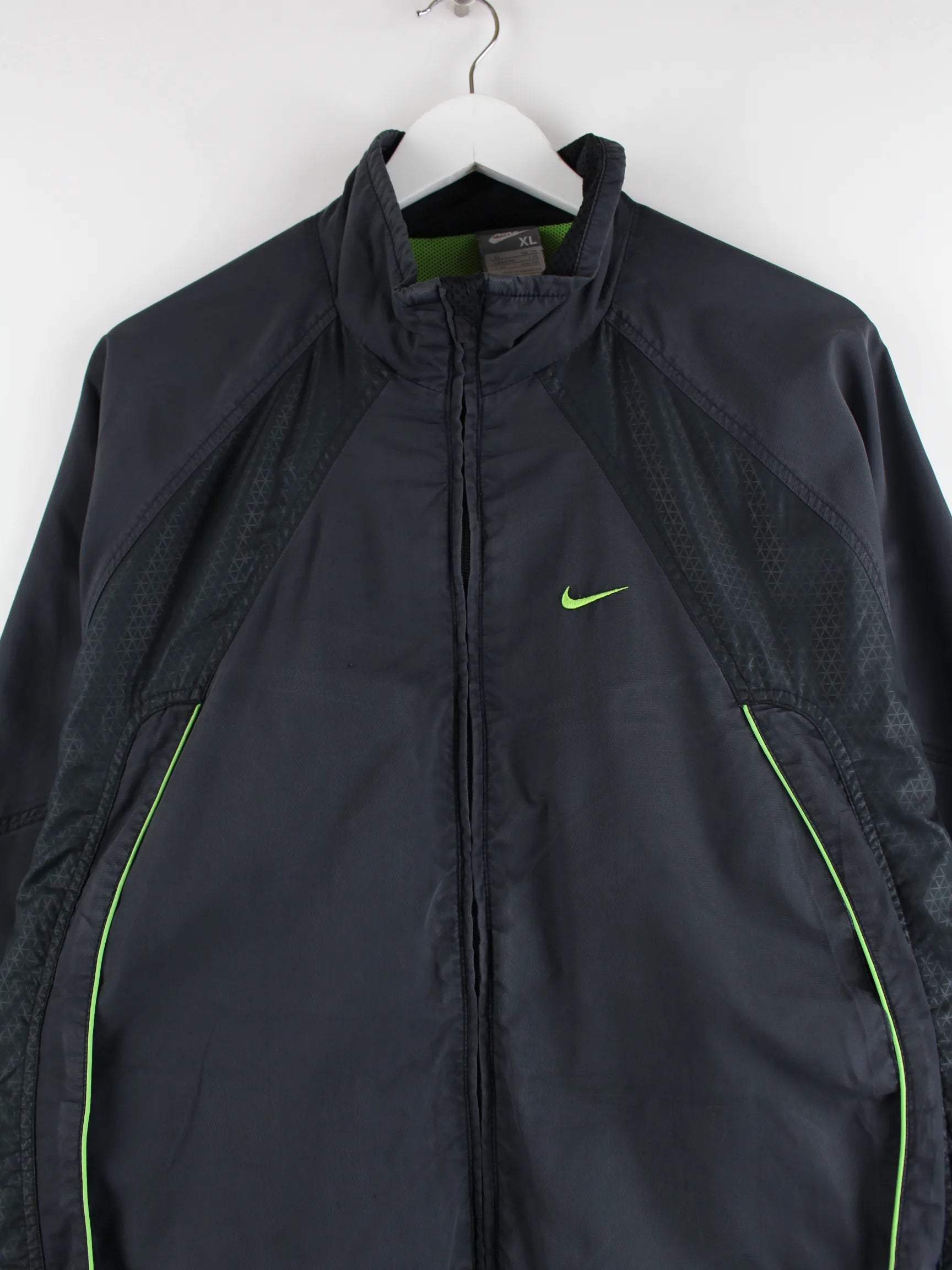Graue Trainingsjacke des Labels Nike in Größe XL. Sie ist aus Synthetik gemacht und in gutem Zustand bei uns zu bekommen.