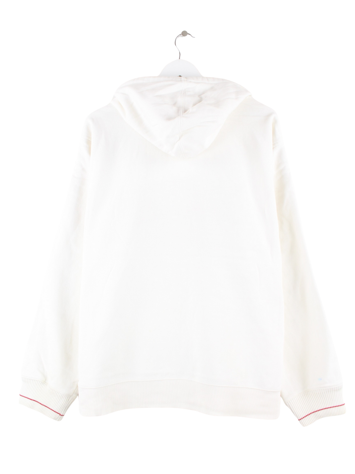 Weißer Hoodie mit gestickten Motiven der Brand Nike in Größe L. Er ist aus einer Baumwollmischung angefertigt und in gutem Zustand im Angebot.