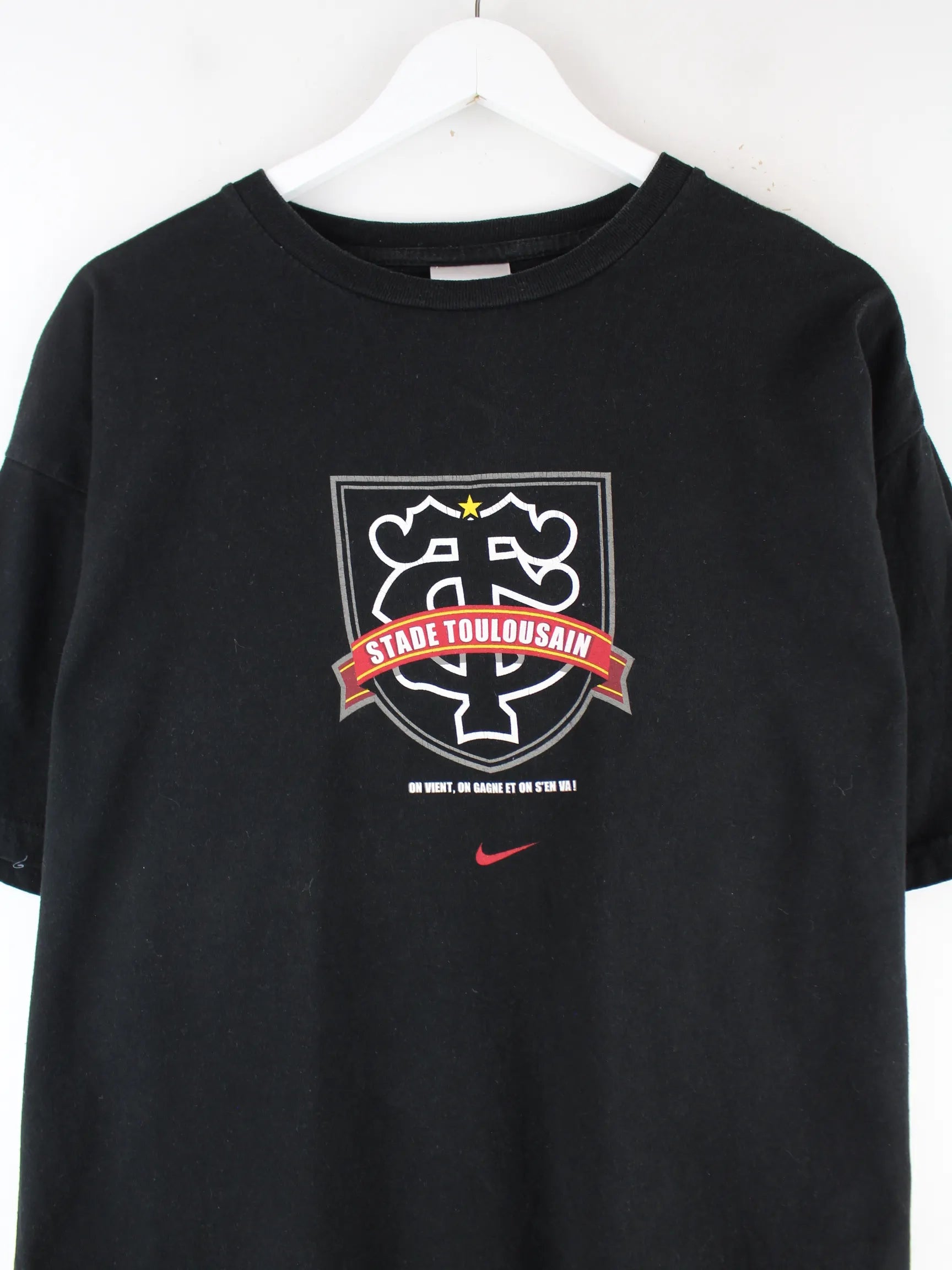 Nike 00s Stade Toulousain Rugby Print T-Shirt Schwarz XL