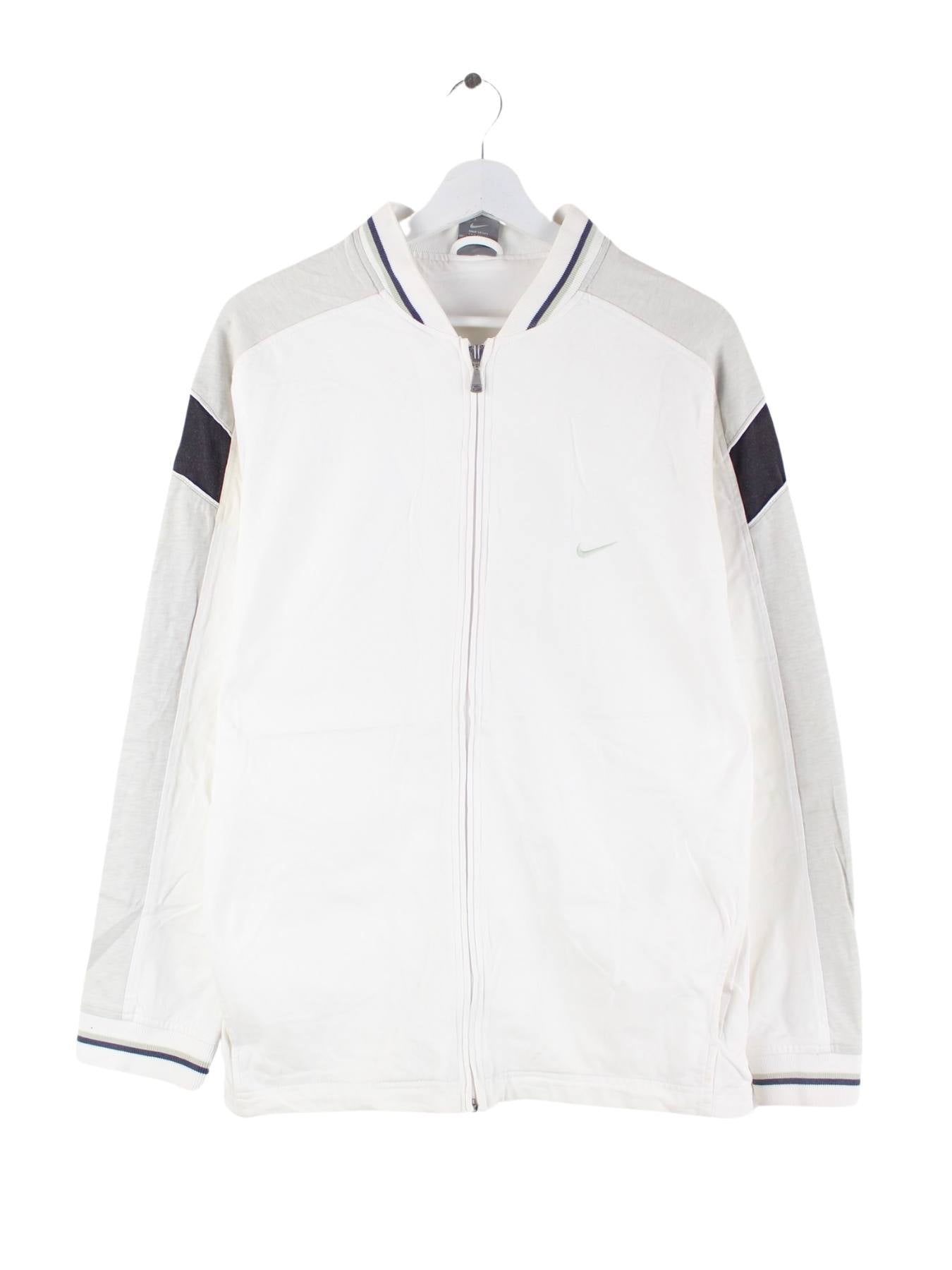 Weiße Trainingsjacke vom Brand Nike in Größe M. Sie ist aus einer Baumwollmischung angefertigt und in sehr gutem Zustand bei uns zu bekommen.