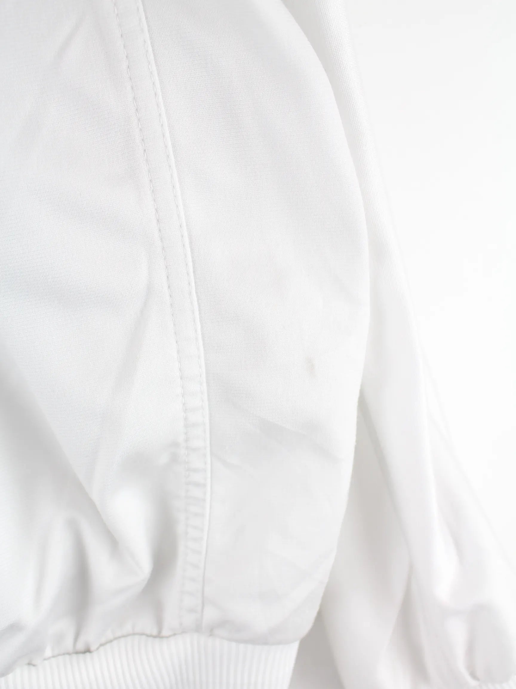 Graue Trainingsjacke mit Stick von Nike aus den 90'ern in Größe XS. Sie ist aus Synthetik gefertigt und in gutem Zustand bei uns zu bekommen.