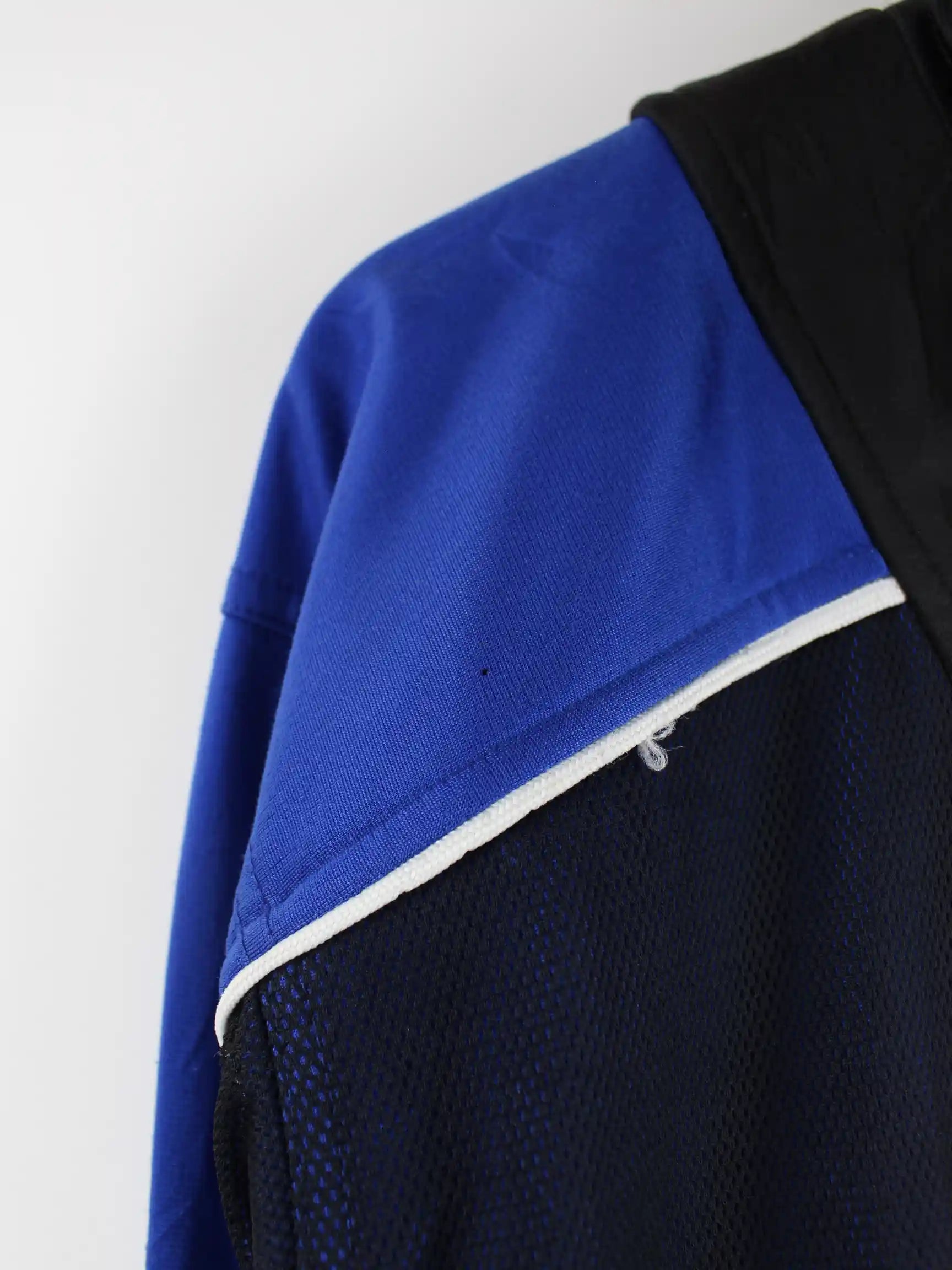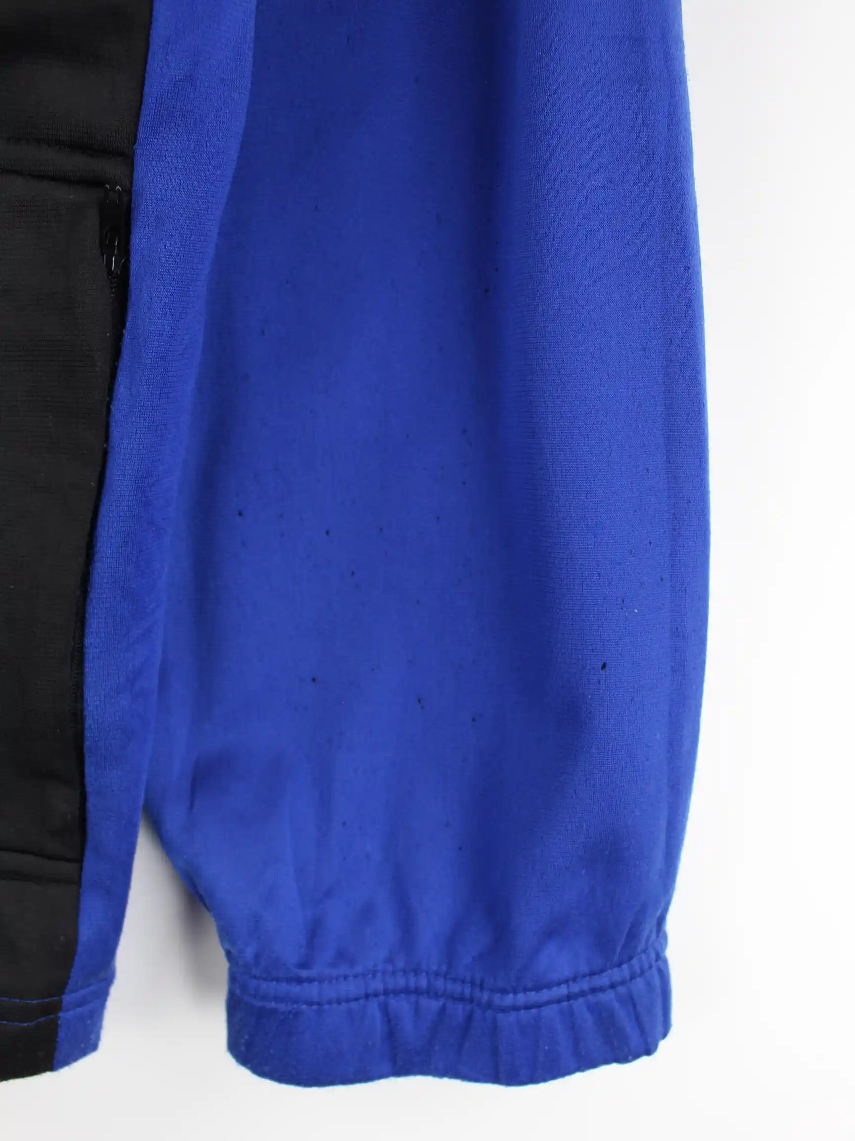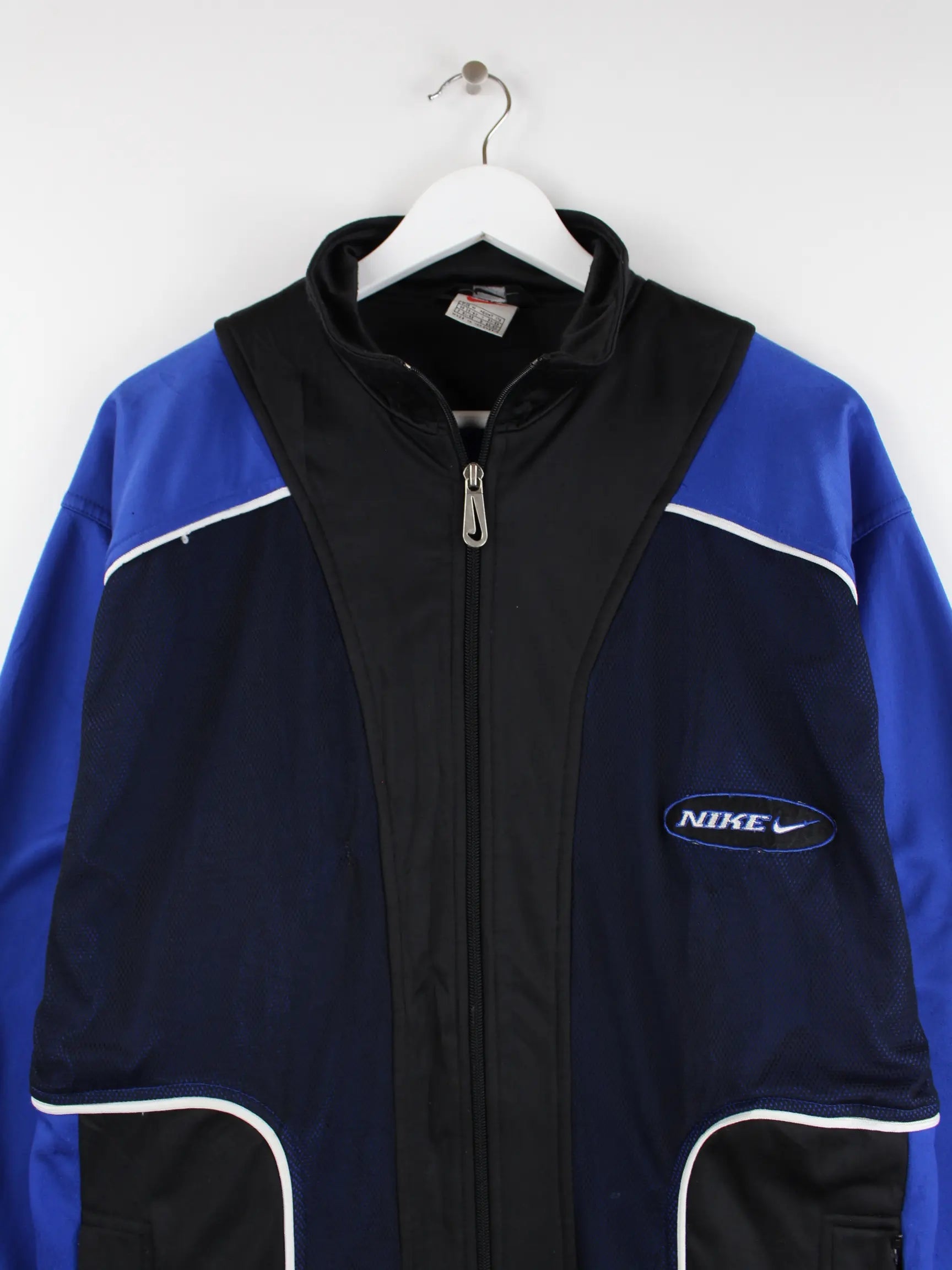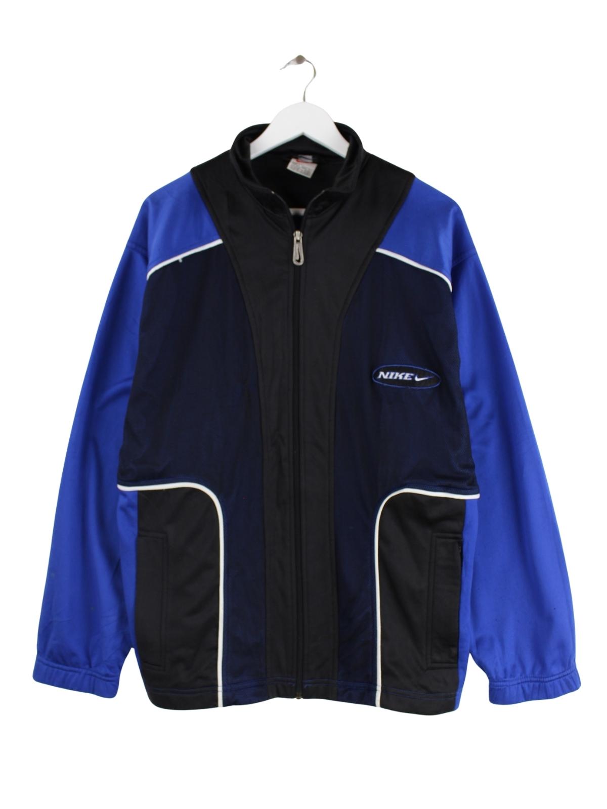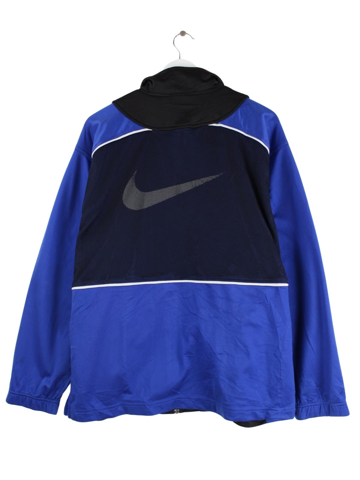 Trainingsjacke der Marke Nike in Größe L aus den 90'ern. Sie ist aus Synthetik angefertigt und in Blau zu bekommen.