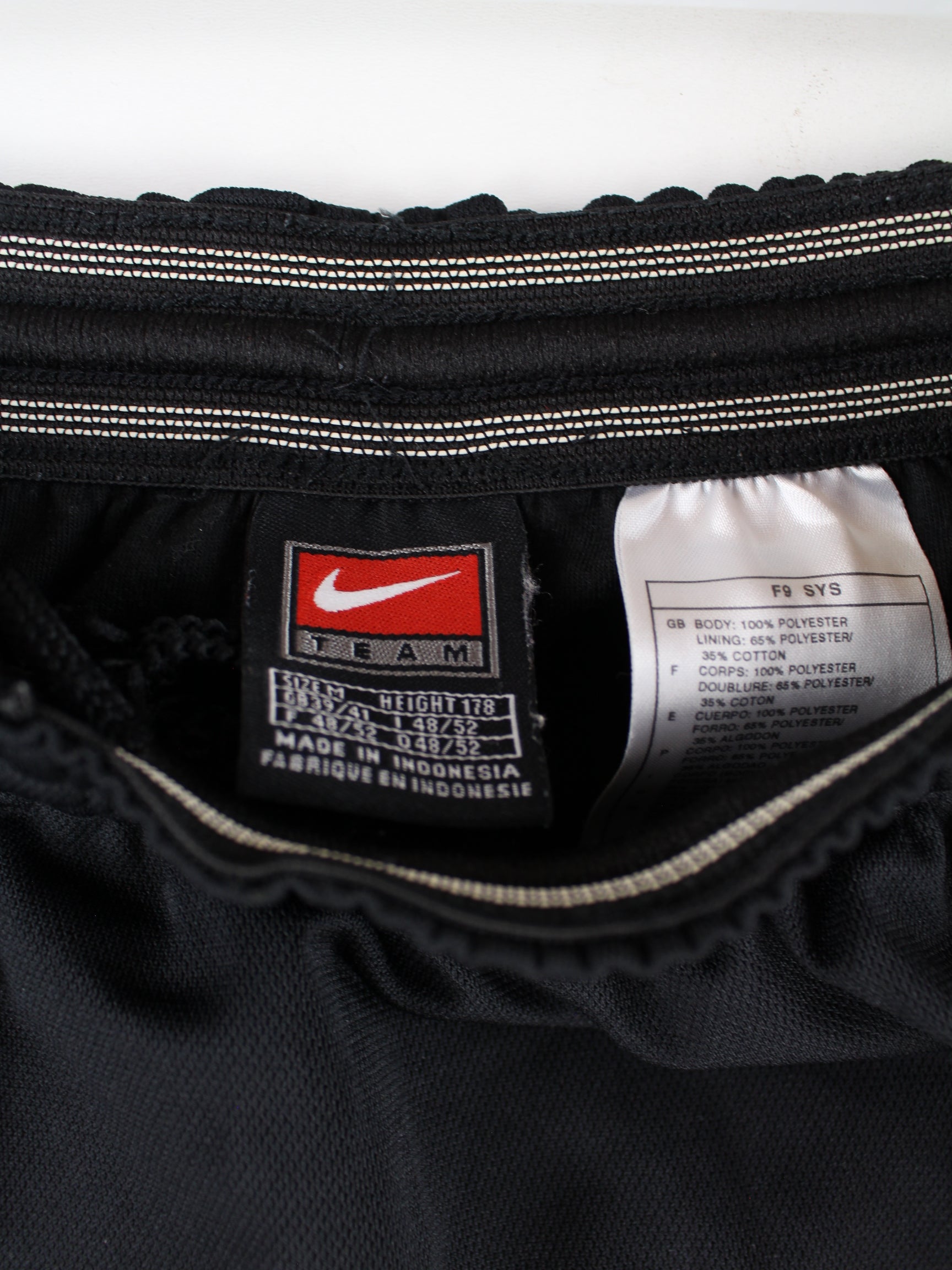 Schwarze Shorts vom Label Nike aus den 90'ern in Größe M. Sie sind aus Synthetik gemacht und in sehr gutem Zustand bei uns vorrätig.