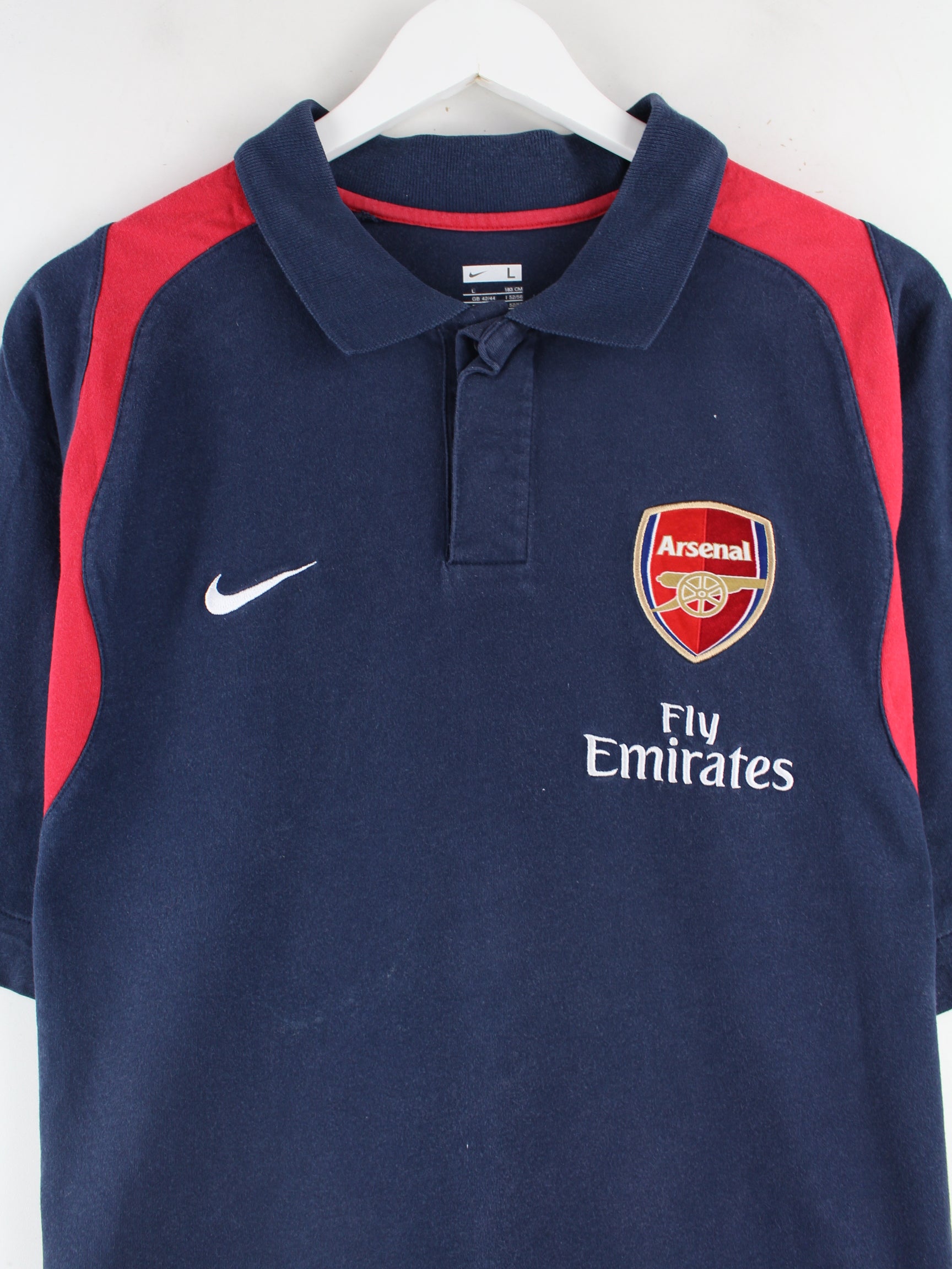 Blaues Poloshirt mit Stickereien der Brand Nike in Größe L. Es ist aus Baumwolle und in gutem Zustand in Stock.