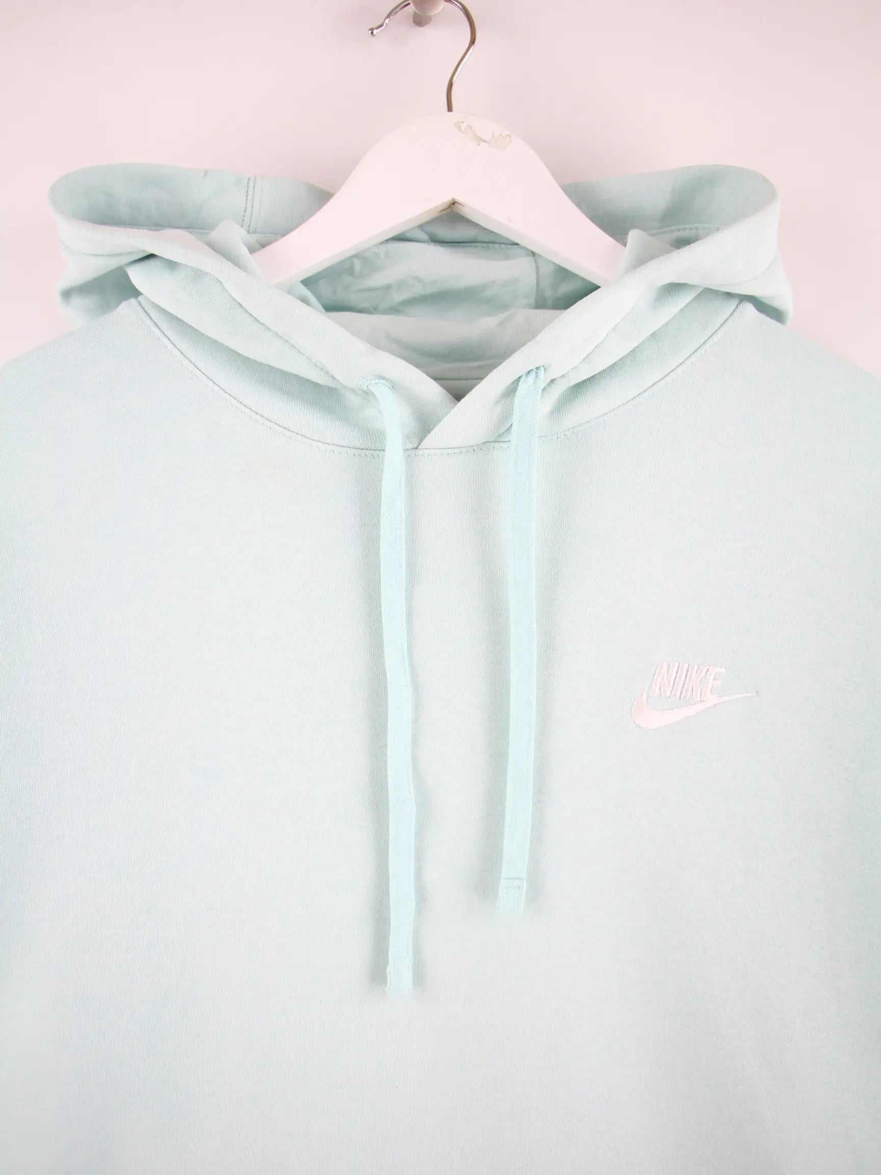 Blauer Hoodie der Marke Nike in Größe M. Er ist aus einer Baumwollmischung gemacht und in gutem Zustand in Stock.