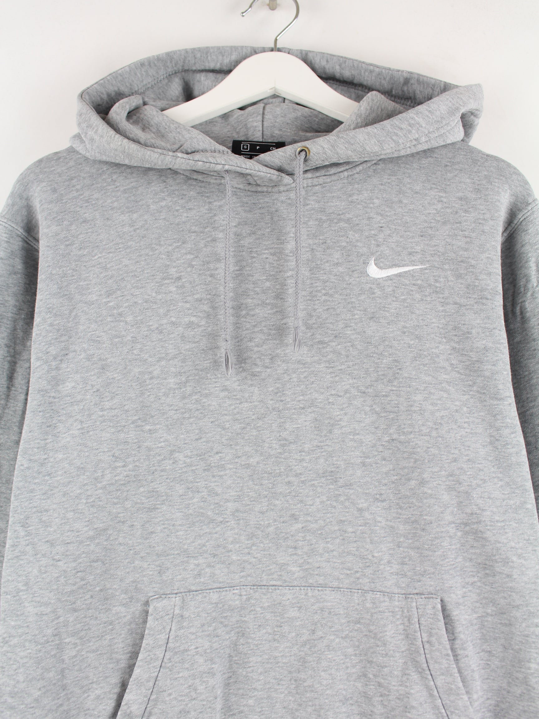 Hoodie des Labels Nike in Größe S. Er ist aus einer Baumwollmischung und in Grau bei uns zu bekommen.