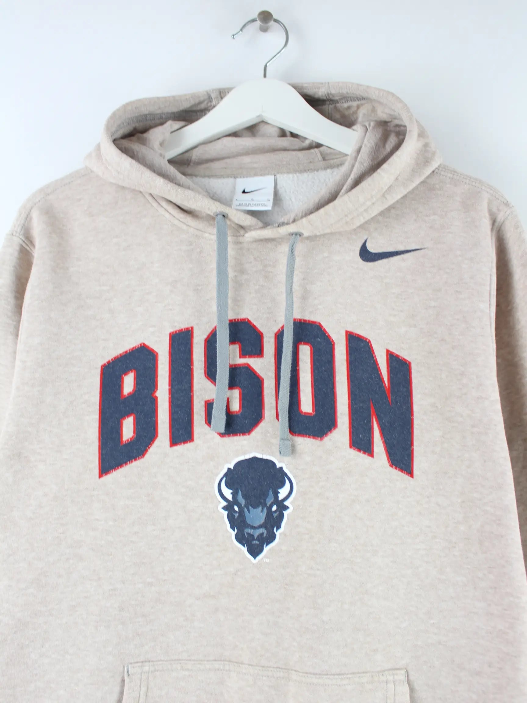 Grauer Hoodie vom Brand Nike in Größe L. Er ist aus einer Baumwollmischung hergestellt und in sehr gutem Zustand auf Lager. Mit schönem Bison Print.