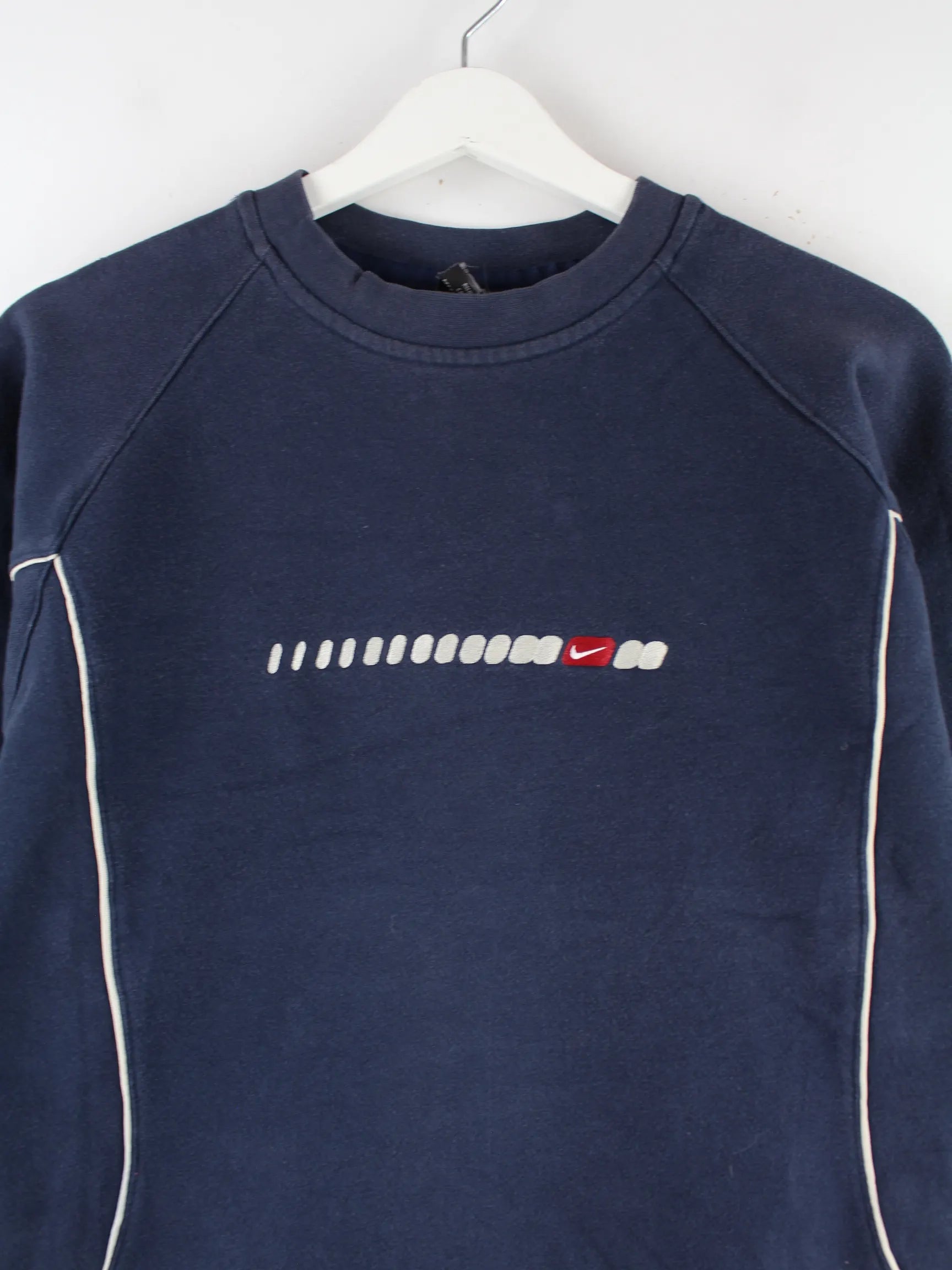 Sweater des Labels Nike mit Stick in Größe S. Er ist aus einer Baumwollmischung und in Blau bei uns zu bekommen.
