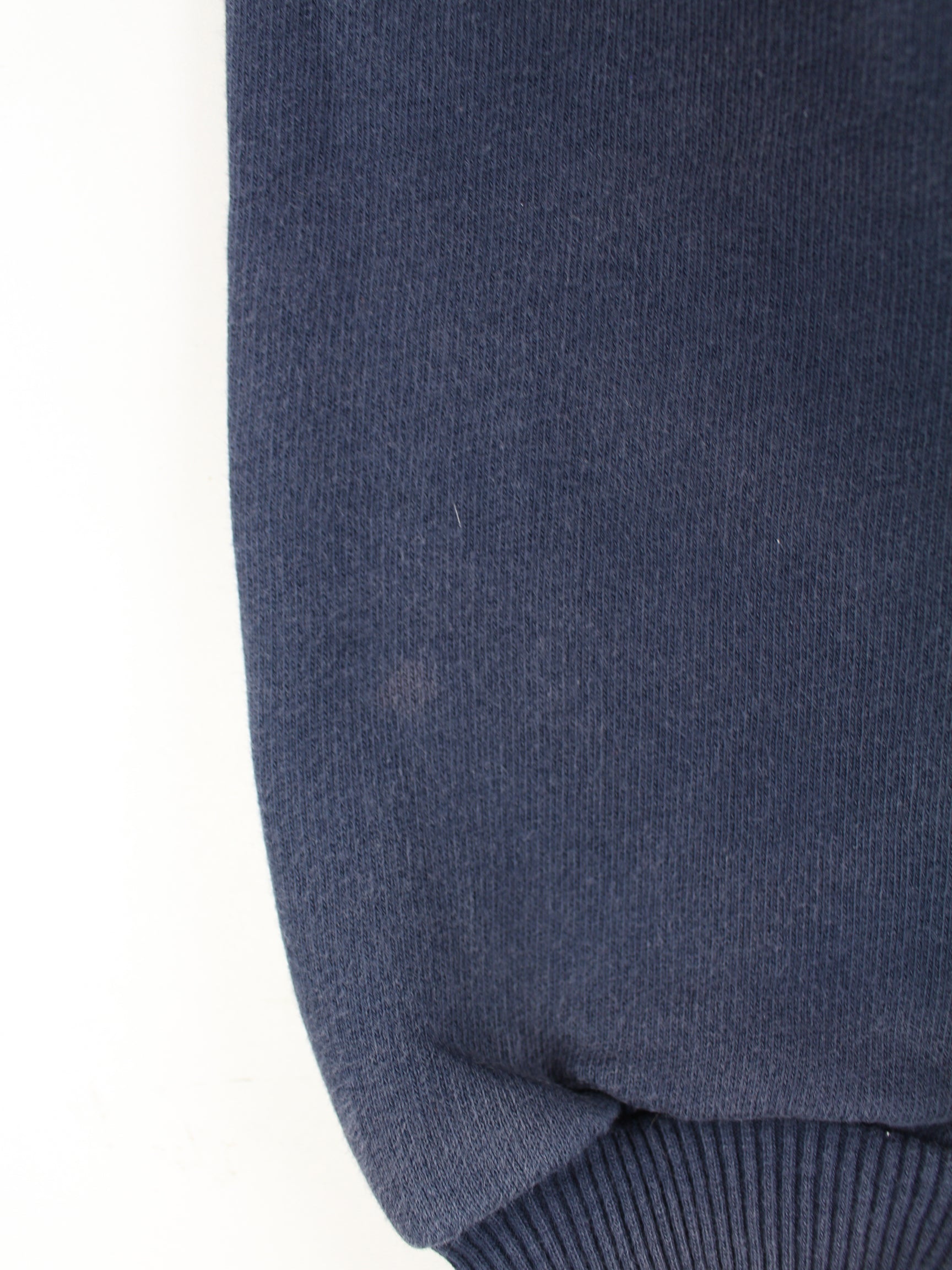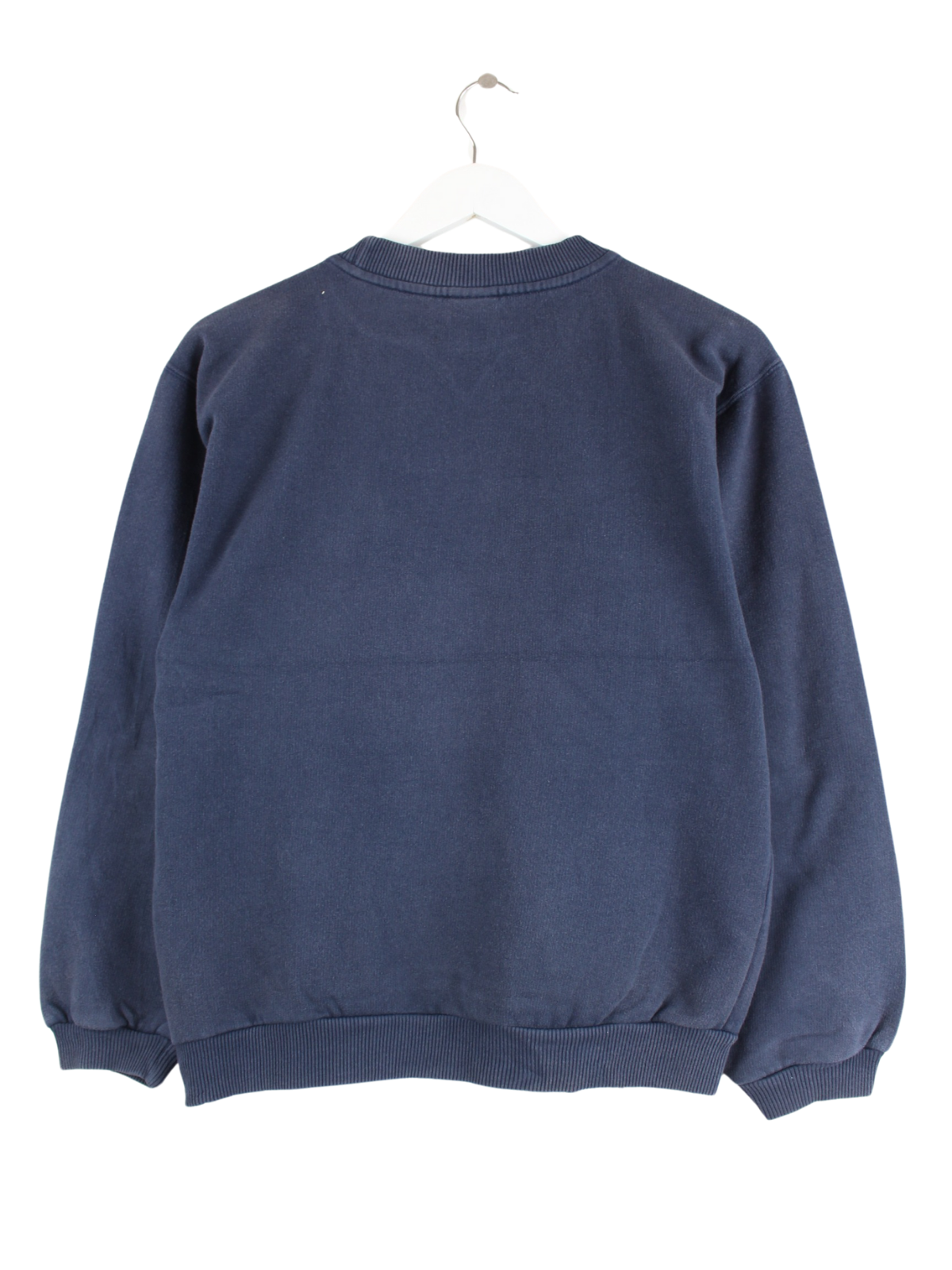 Sweater vom Brand Nike mit gestickten Motiven in Größe XS aus den 90'ern. Er ist aus einer Baumwollmischung gefertigt und in Blau auf Lager.
