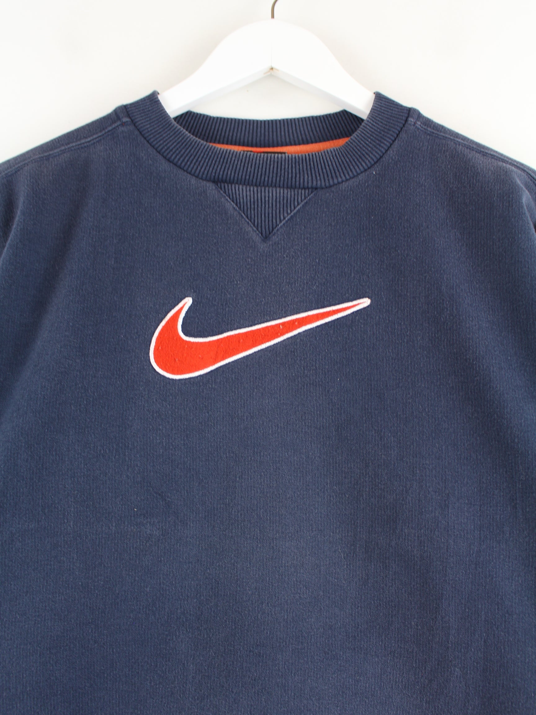 Nike Damen 90s Vintage Big Swoosh Embroidered Sweater Blau XS