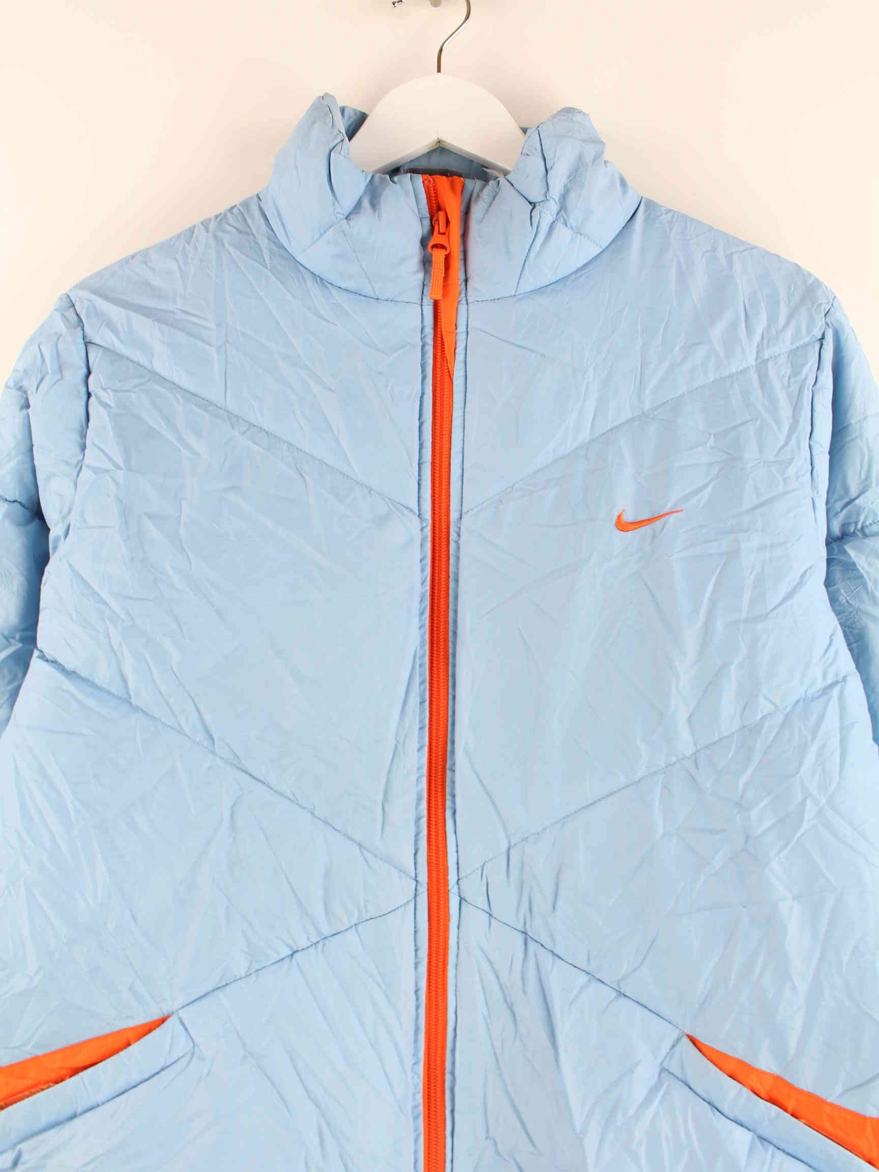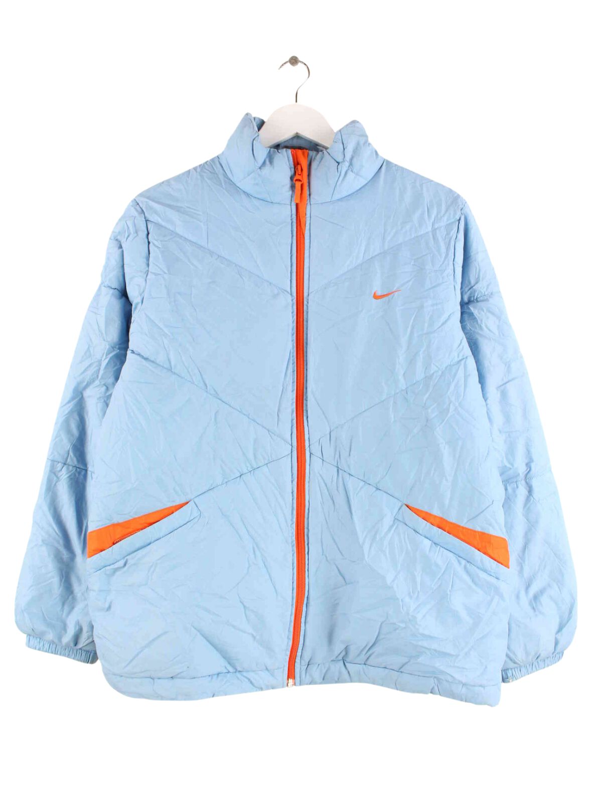 Blaue Jacke aus dem Hause Nike aus Anfang der 2000'er in Größe L. Sie ist aus Synthetik gemacht und in sehr gutem Zustand im Bestand.