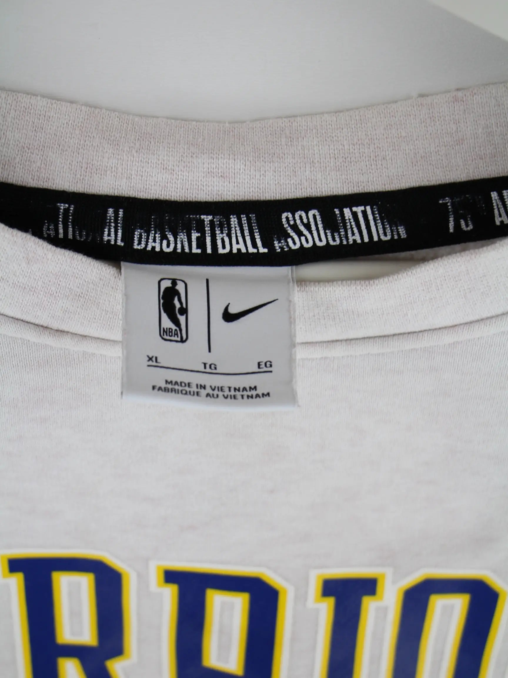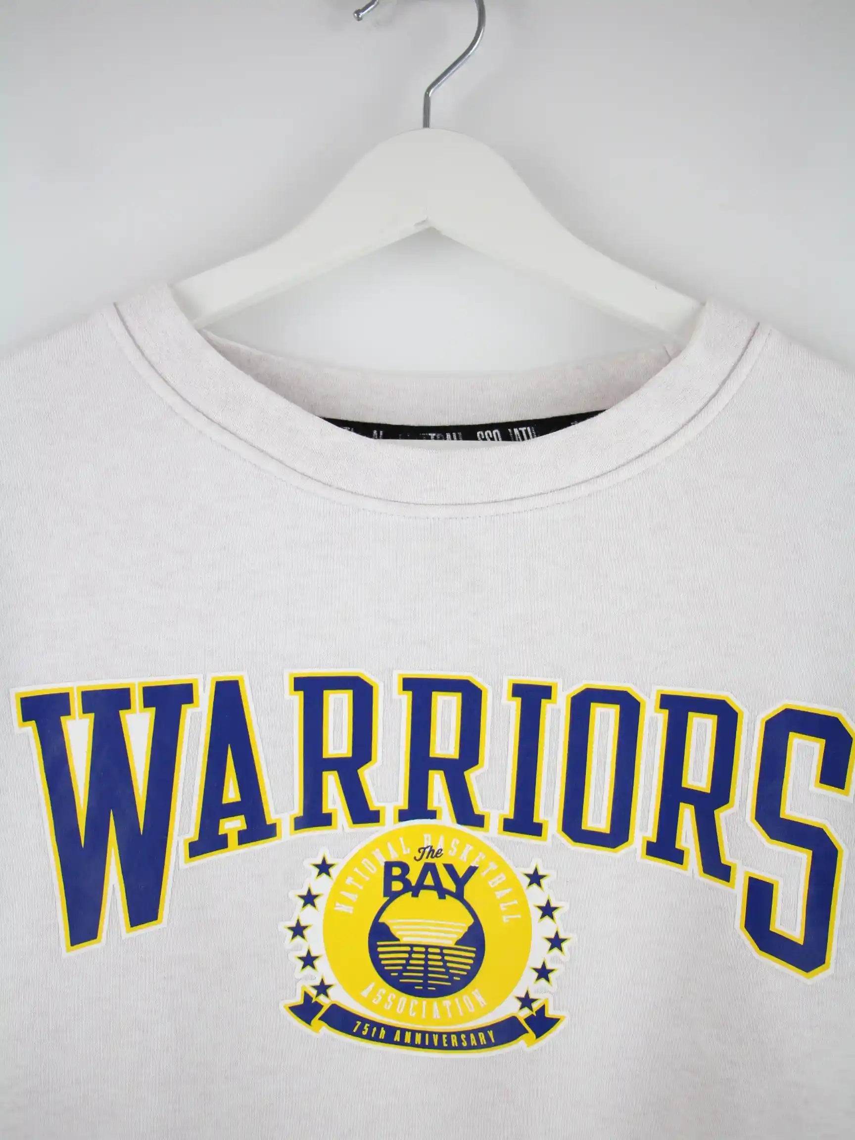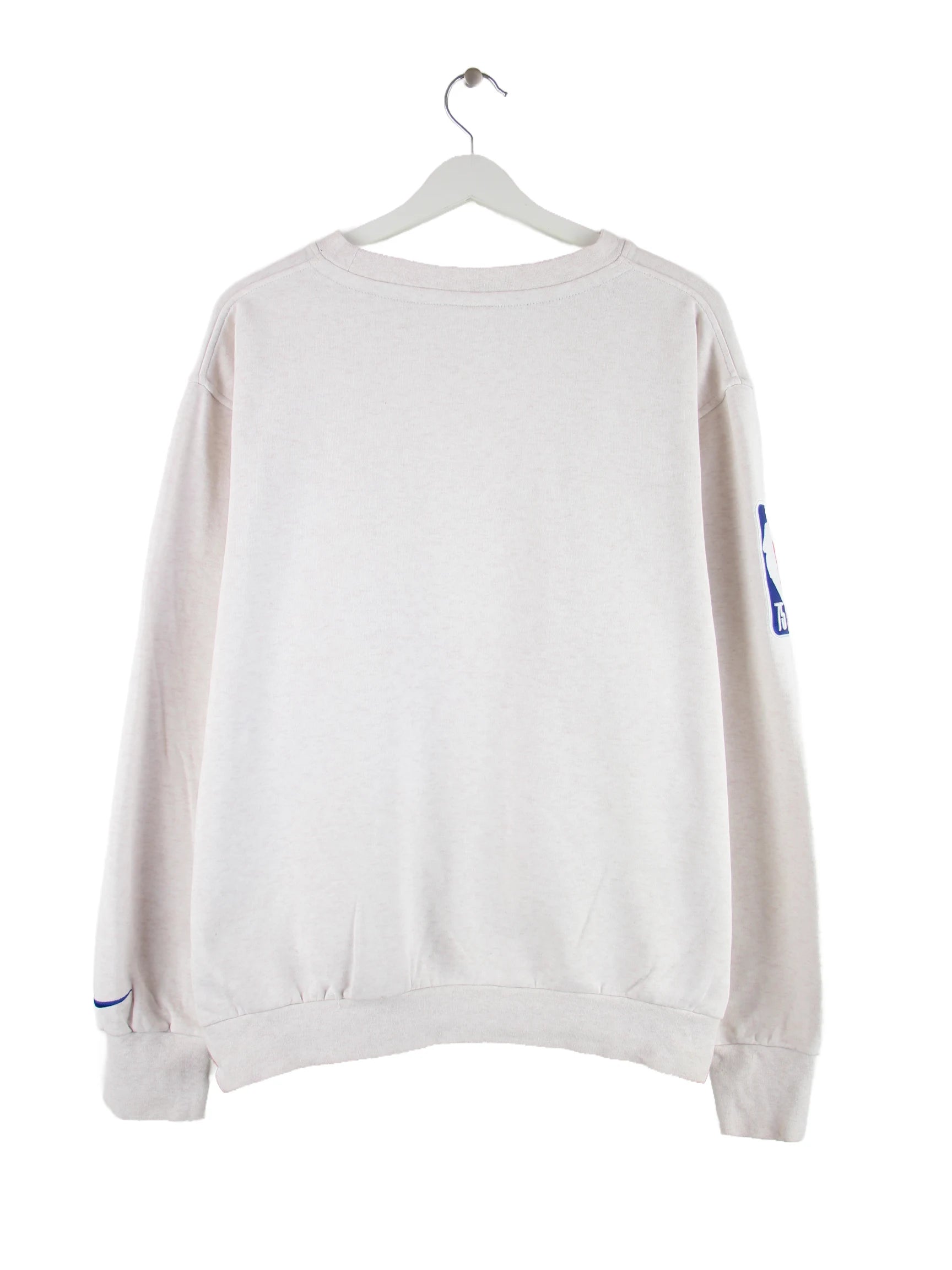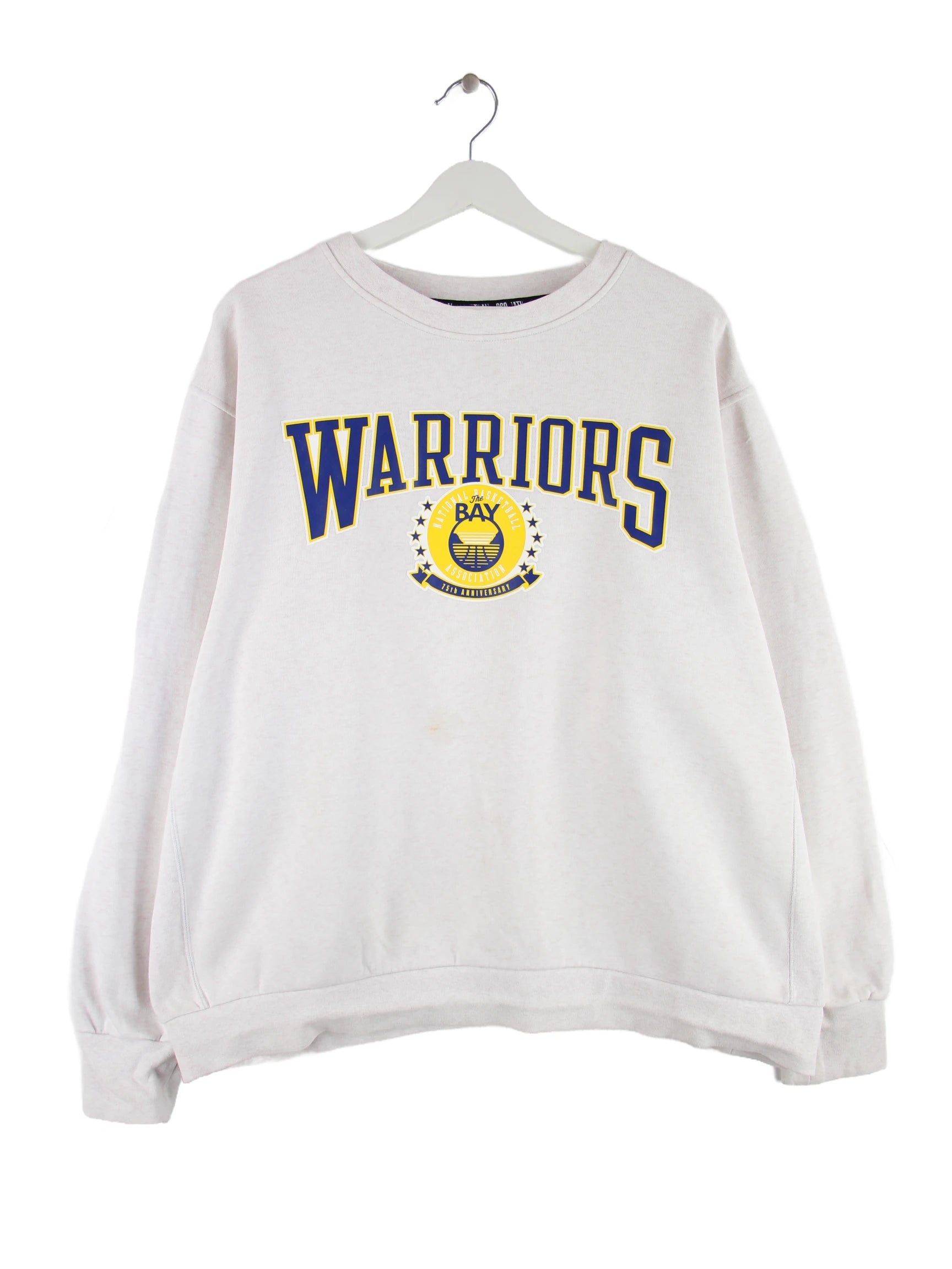 Grauer Sweater von Nike in Größe XL. Er ist aus einer Baumwollmischung gefertigt. Den Zustand würden wir als 'In Ordnung' bezeichnen (vergl. Bilder).Mit tollem Warriors Print.