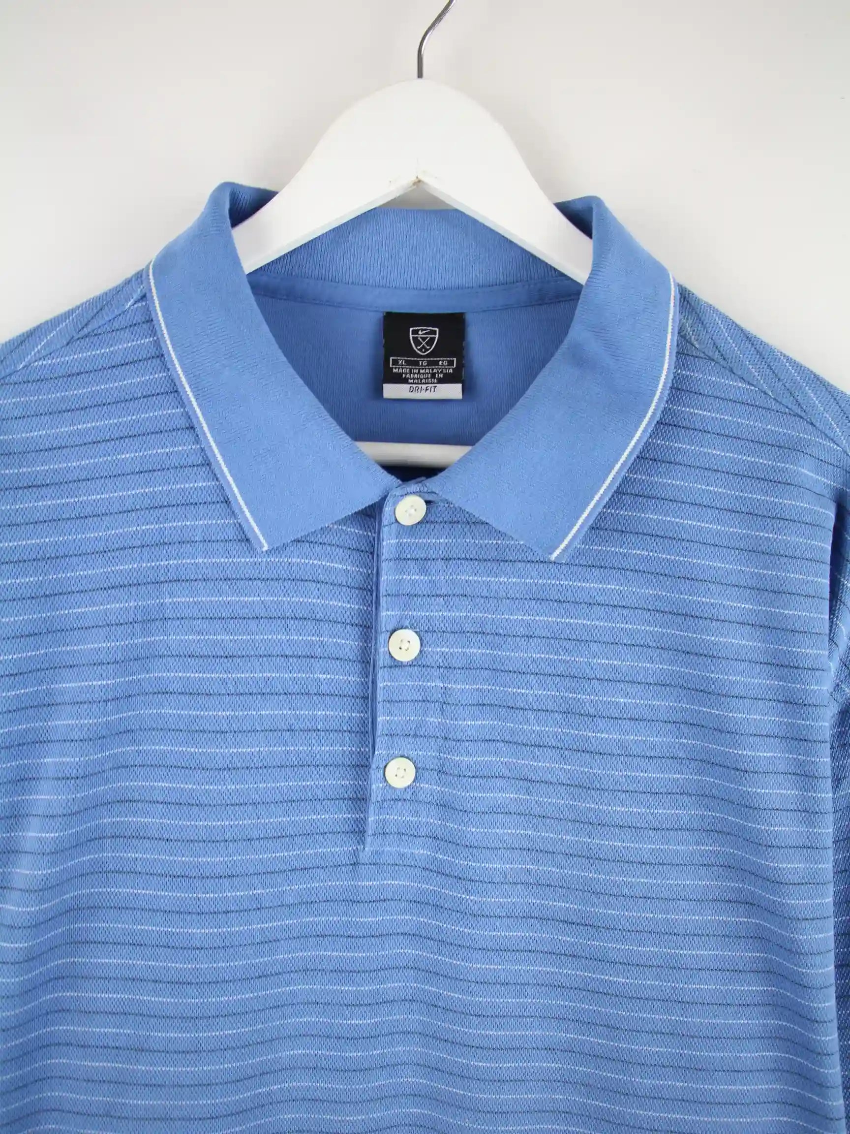 Blaues Poloshirt von Nike in Größe XL. Es ist aus einer Baumwollmischung hergestellt. Den Zustand würden wir als 'In Ordnung' bezeichnen (vergl. Bilder).