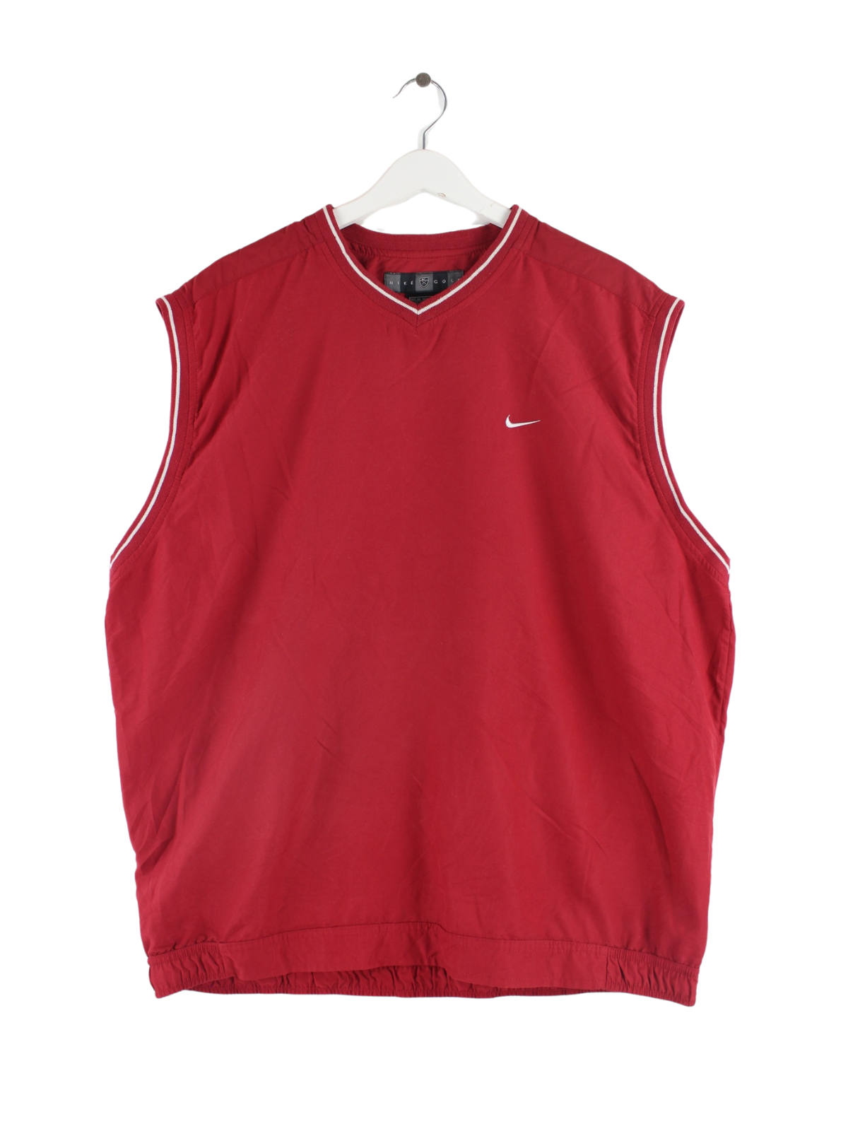 Roter Pullunder aus dem Hause Nike in Größe XL. Er ist aus Synthetik gefertigt und in sehr gutem Zustand auf Lager.
