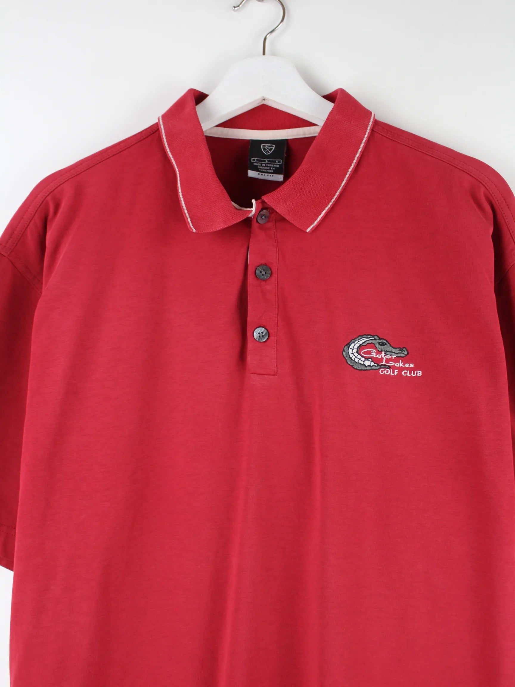 Rotes Poloshirt aus dem Hause Nike in Größe L. Es ist aus Baumwolle angefertigt und in gutem Zustand vorrätig.