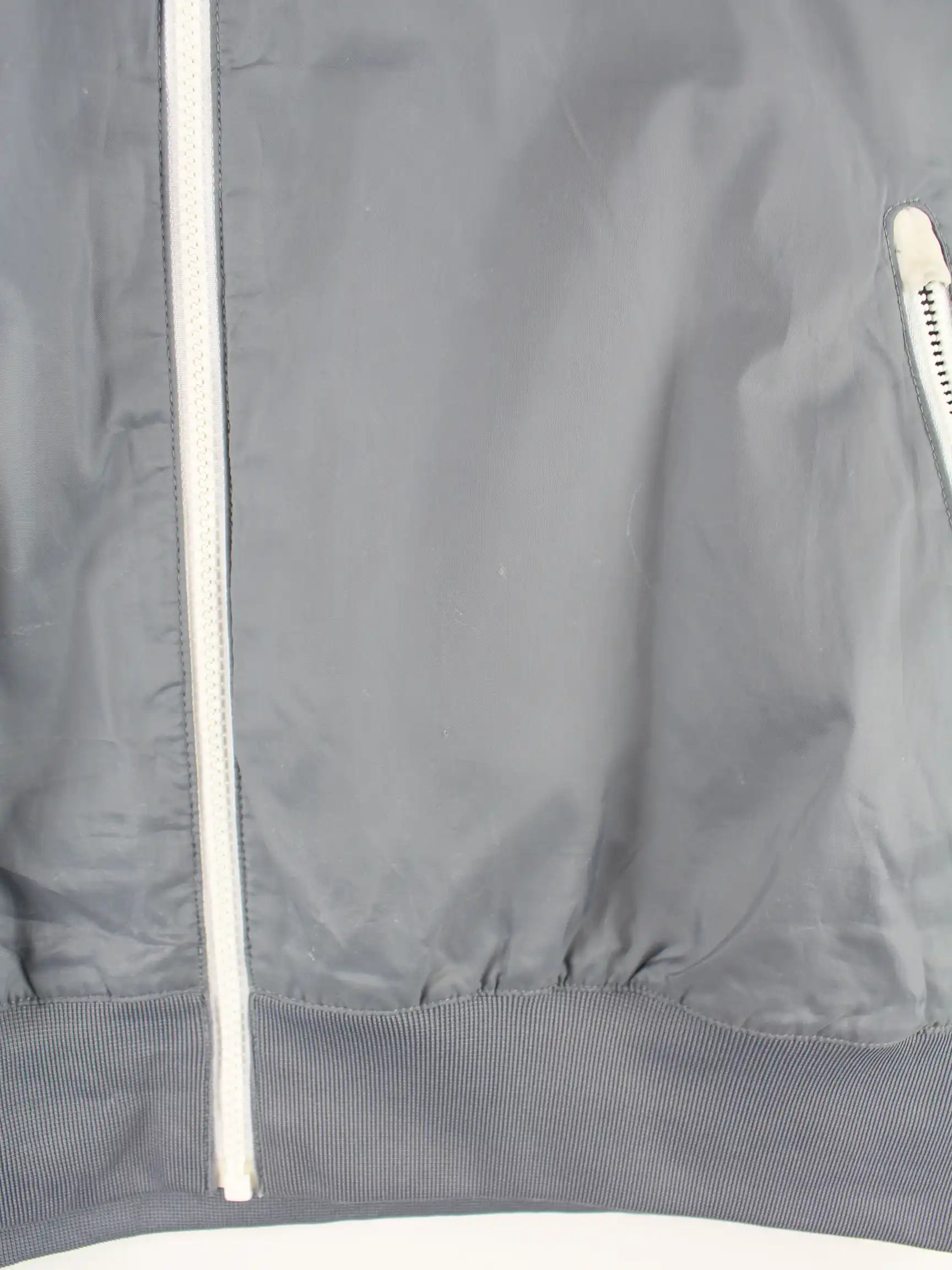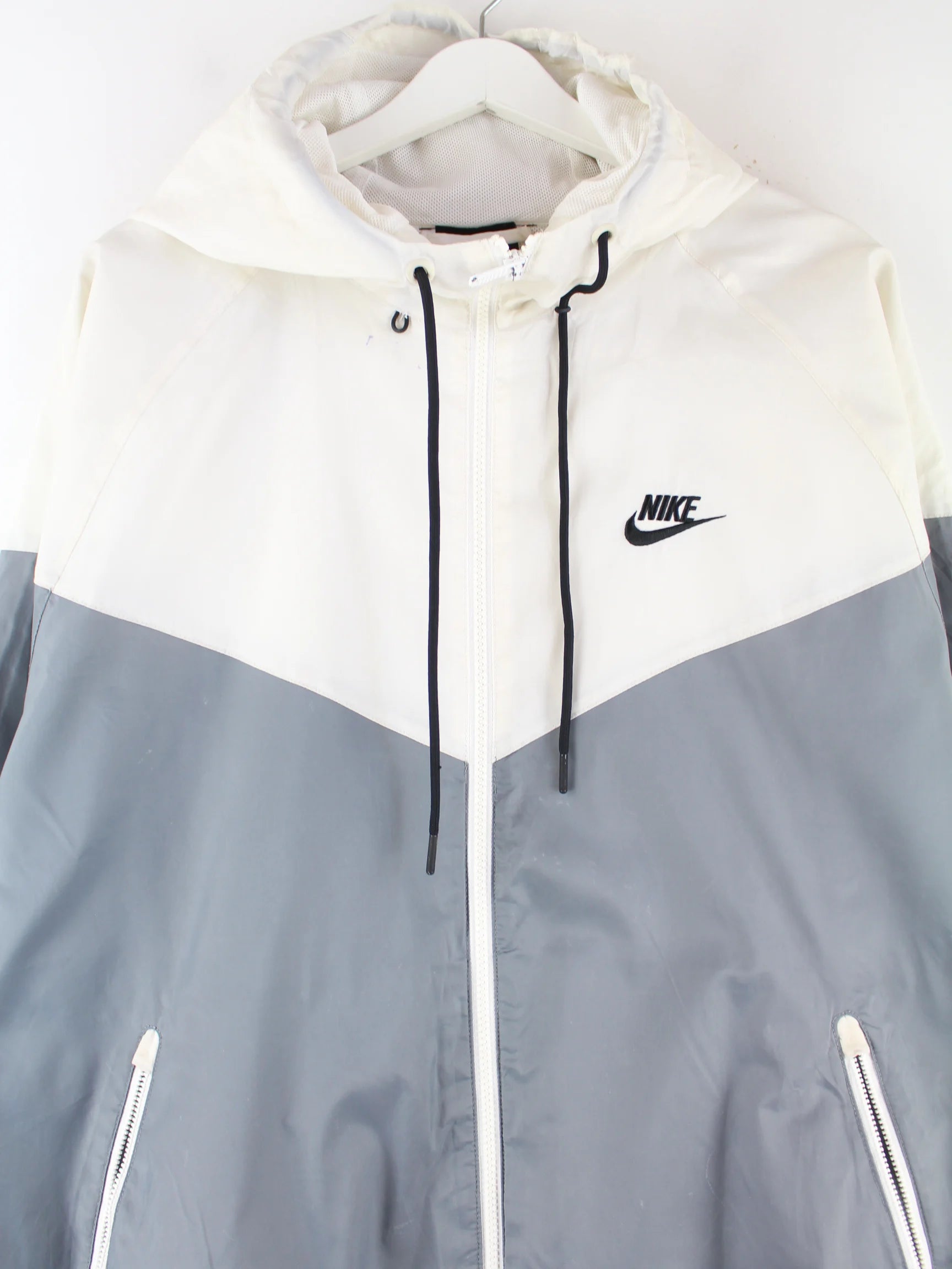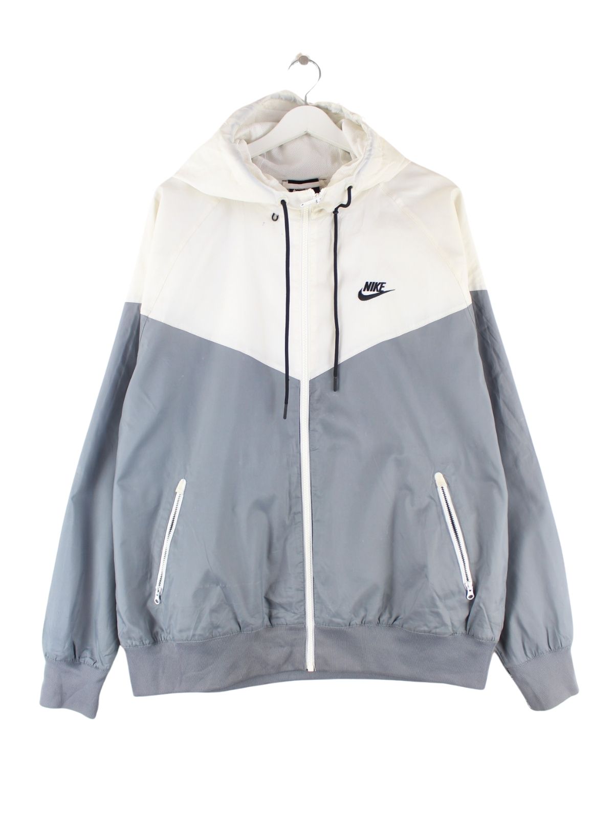 Leichte Jacke des Labels Nike in Größe L. Sie ist aus Synthetik angefertigt und in Grau in Stock.