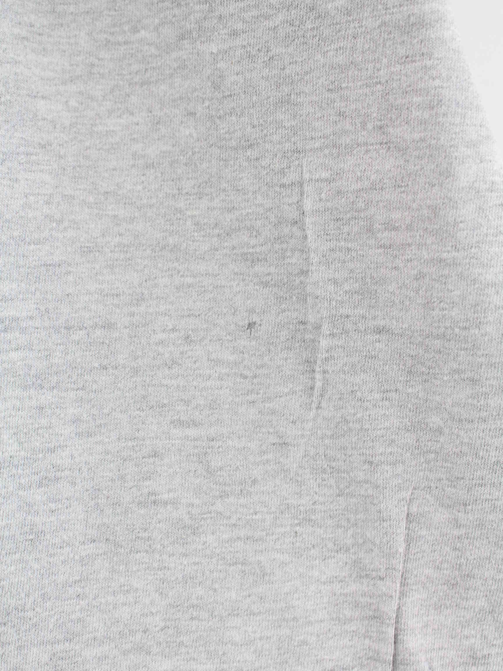 Grauer Sweater aus dem Hause Champion in Größe XL. Er ist aus einer Baumwollmischung gemacht und in gutem Zustand im Bestand. Mit seltenem Print.
