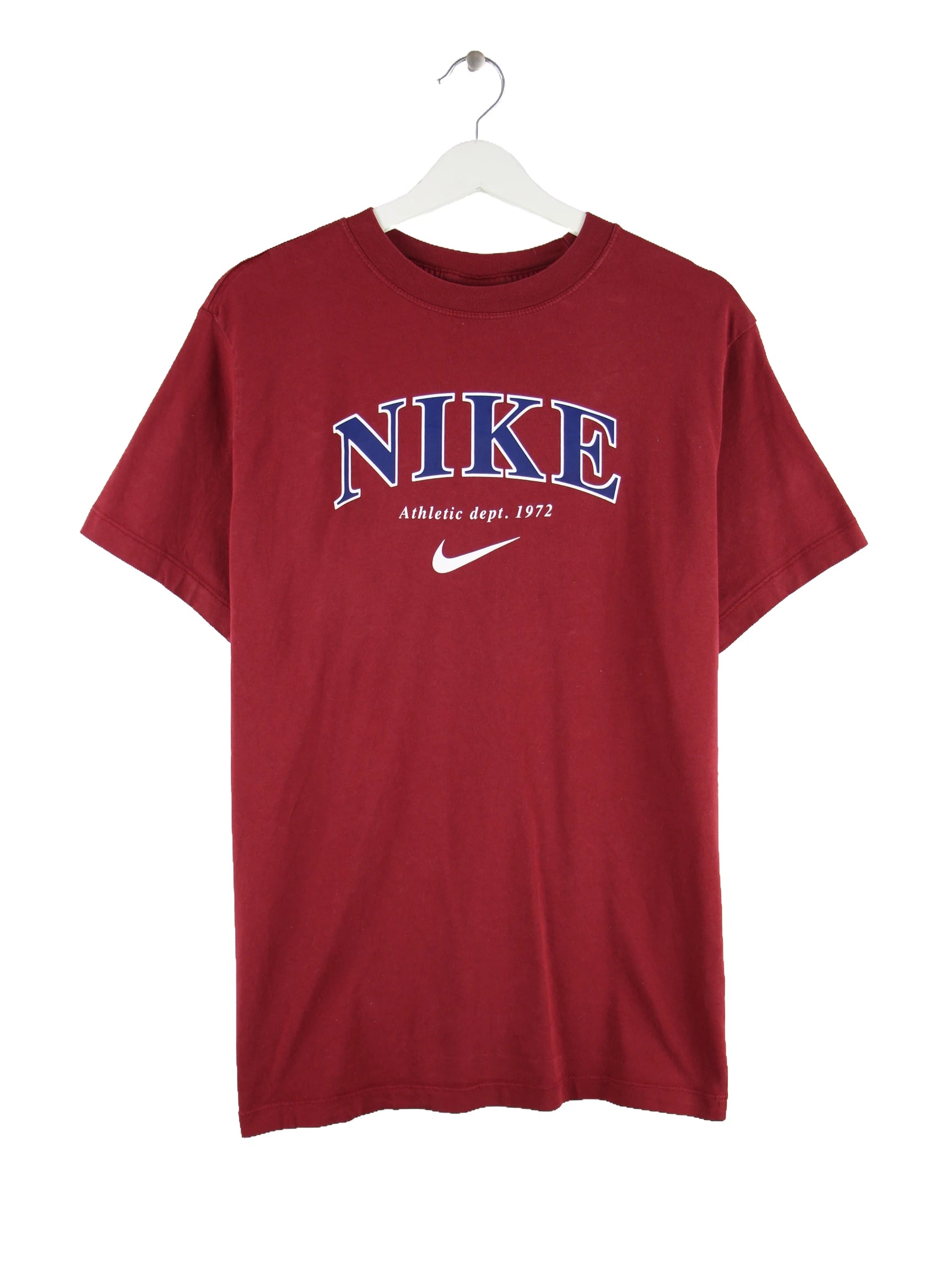 T-Shirt der Marke Nike in Größe S. Es ist aus Baumwolle gemacht und in Rot auf Lager. Mit tollem Print.