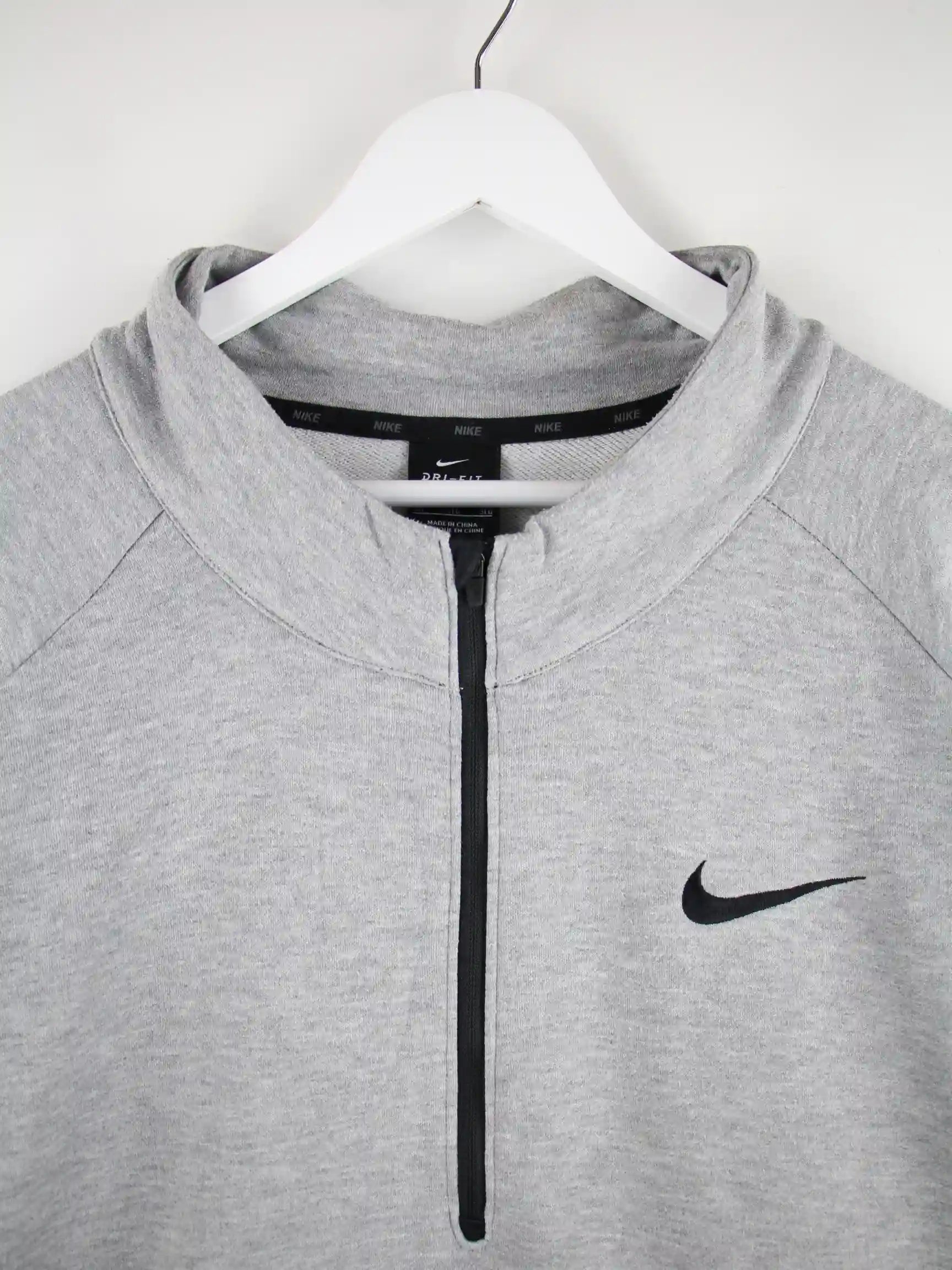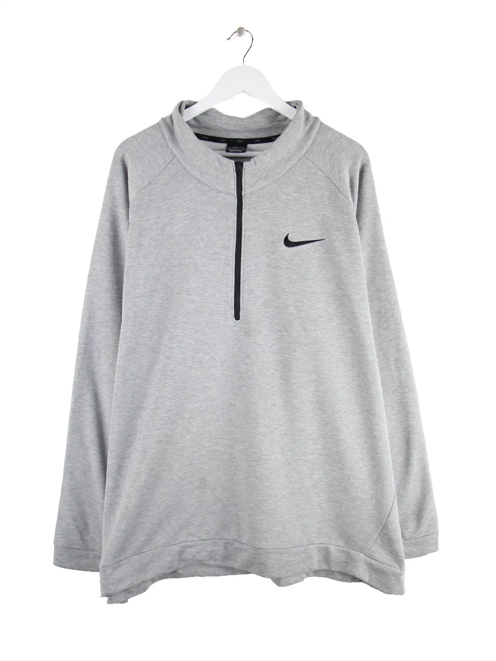 Sweater des Labels Nike mit halbem Reißverschluß in Größe 3XL. Er ist aus einer Baumwollmischung gemacht und in Grau im Angebot.