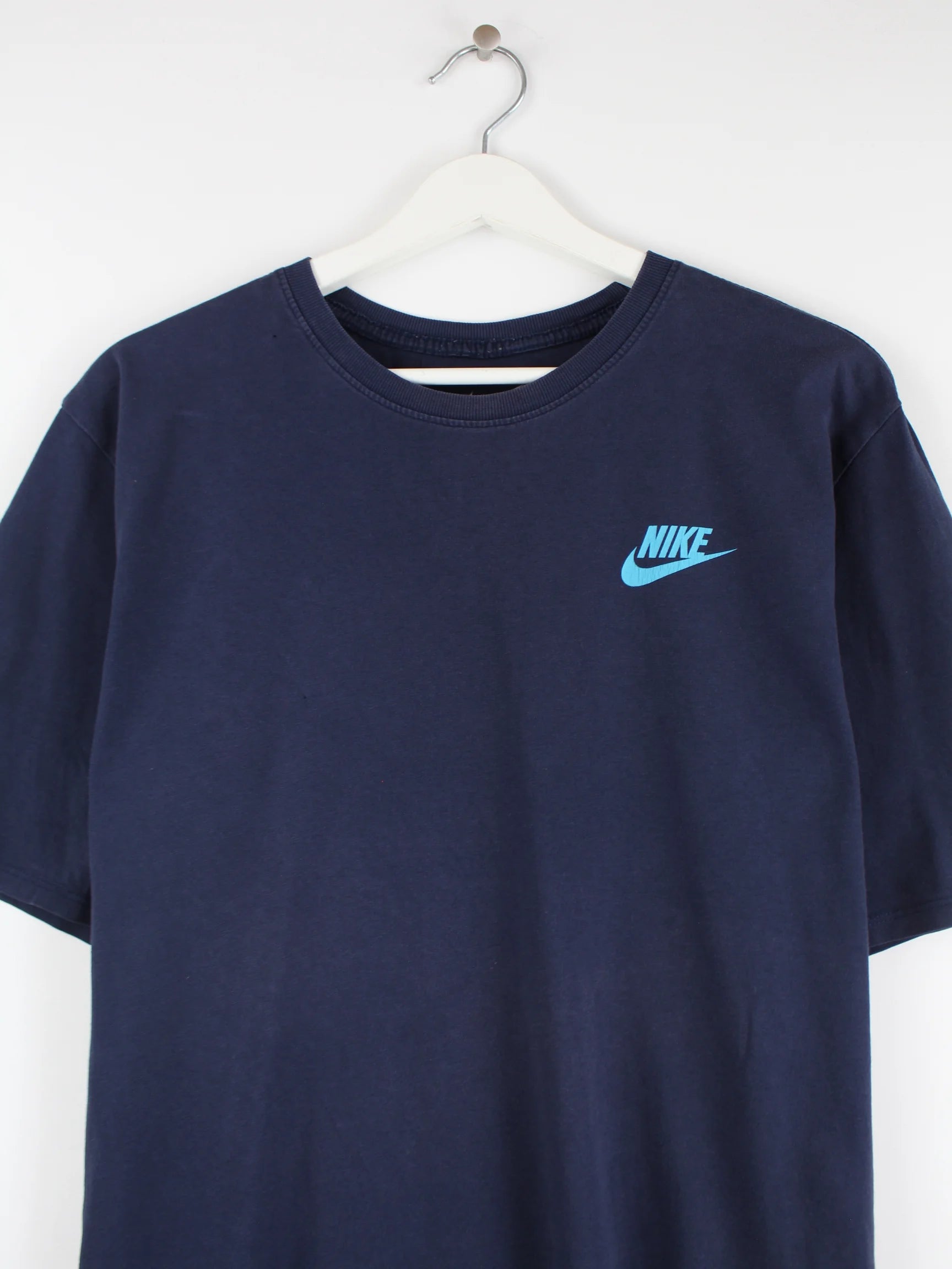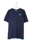 Blaues T-Shirt vom Brand Nike in Größe XL. Es ist aus Baumwolle . Den Zustand würden wir als 'In Ordnung' bezeichnen (vergl. Bilder).Mit schönem Spellout Print.