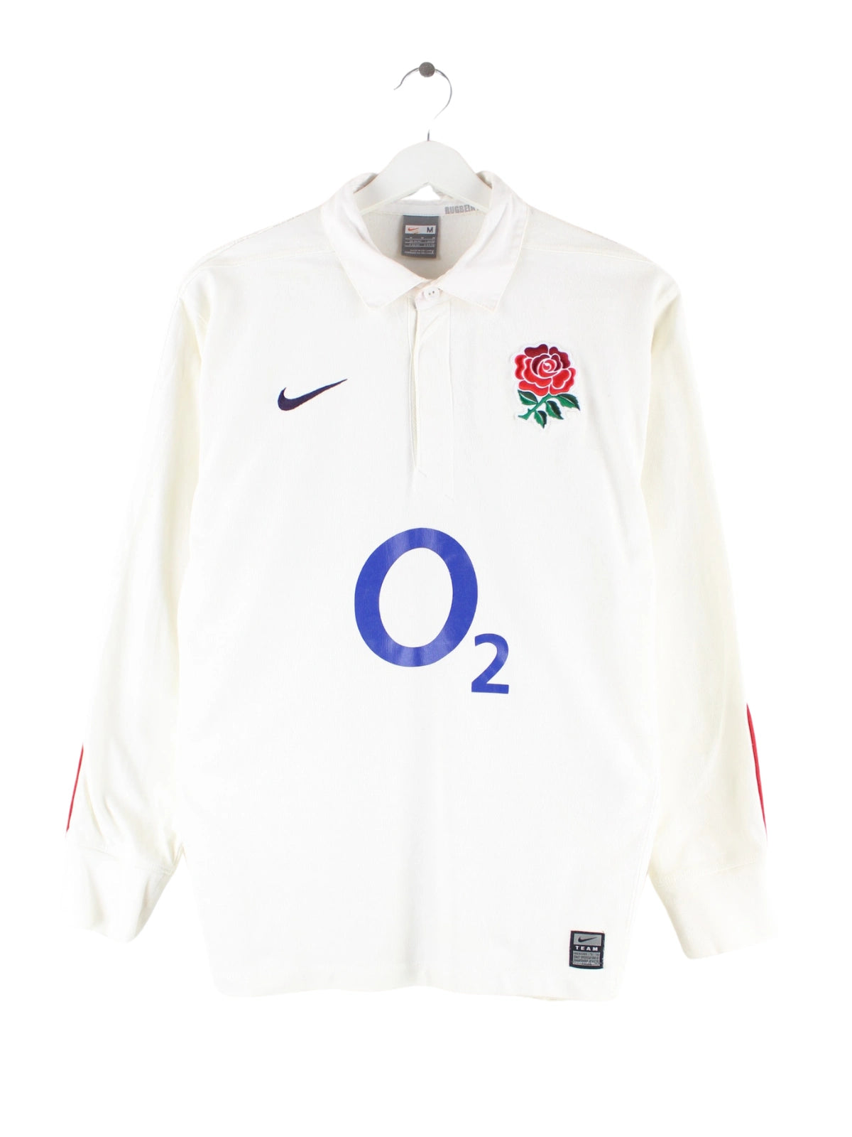 Nike y2k Rose Bowl England Rugby Langarm Polo Weiß M