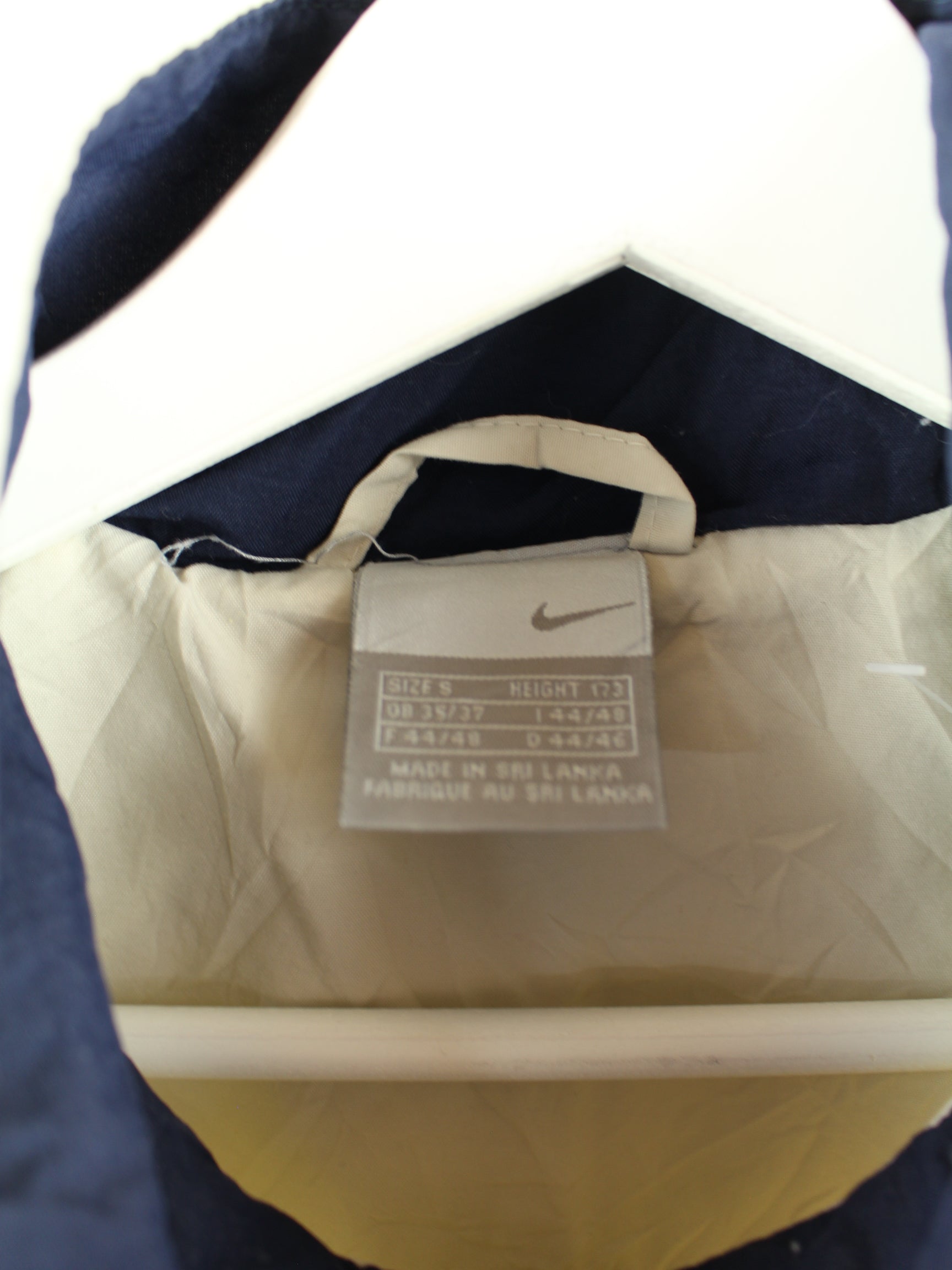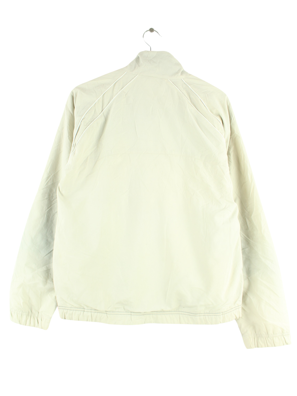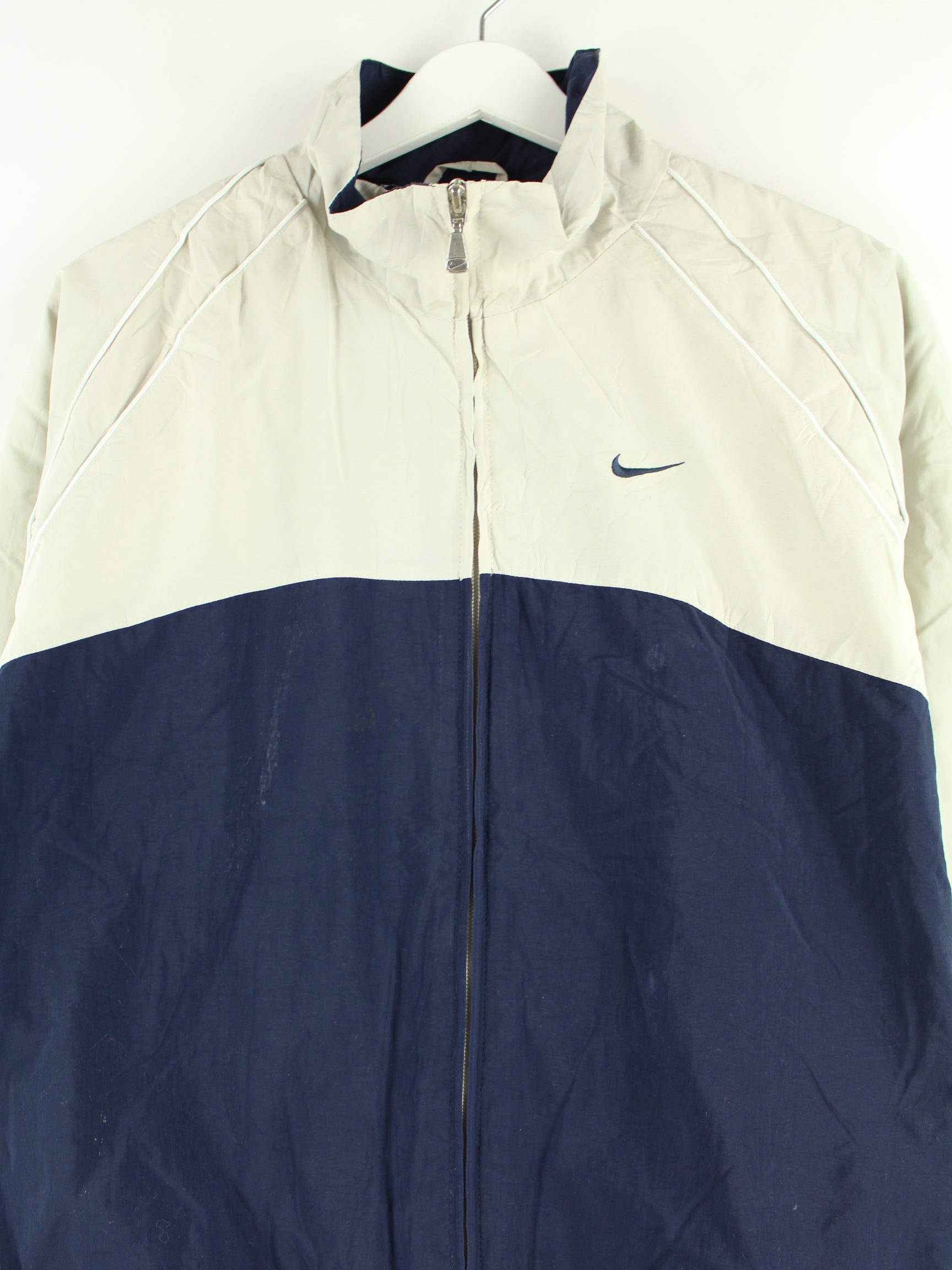 Beigefarbene Trainingsjacke aus dem Hause Nike aus Anfang der 2000'er in Größe S. Sie ist aus einer Baumwollmischung gefertigt. Den Zustand würden wir als 'In Ordnung' bezeichnen (vergl. Bilder).
