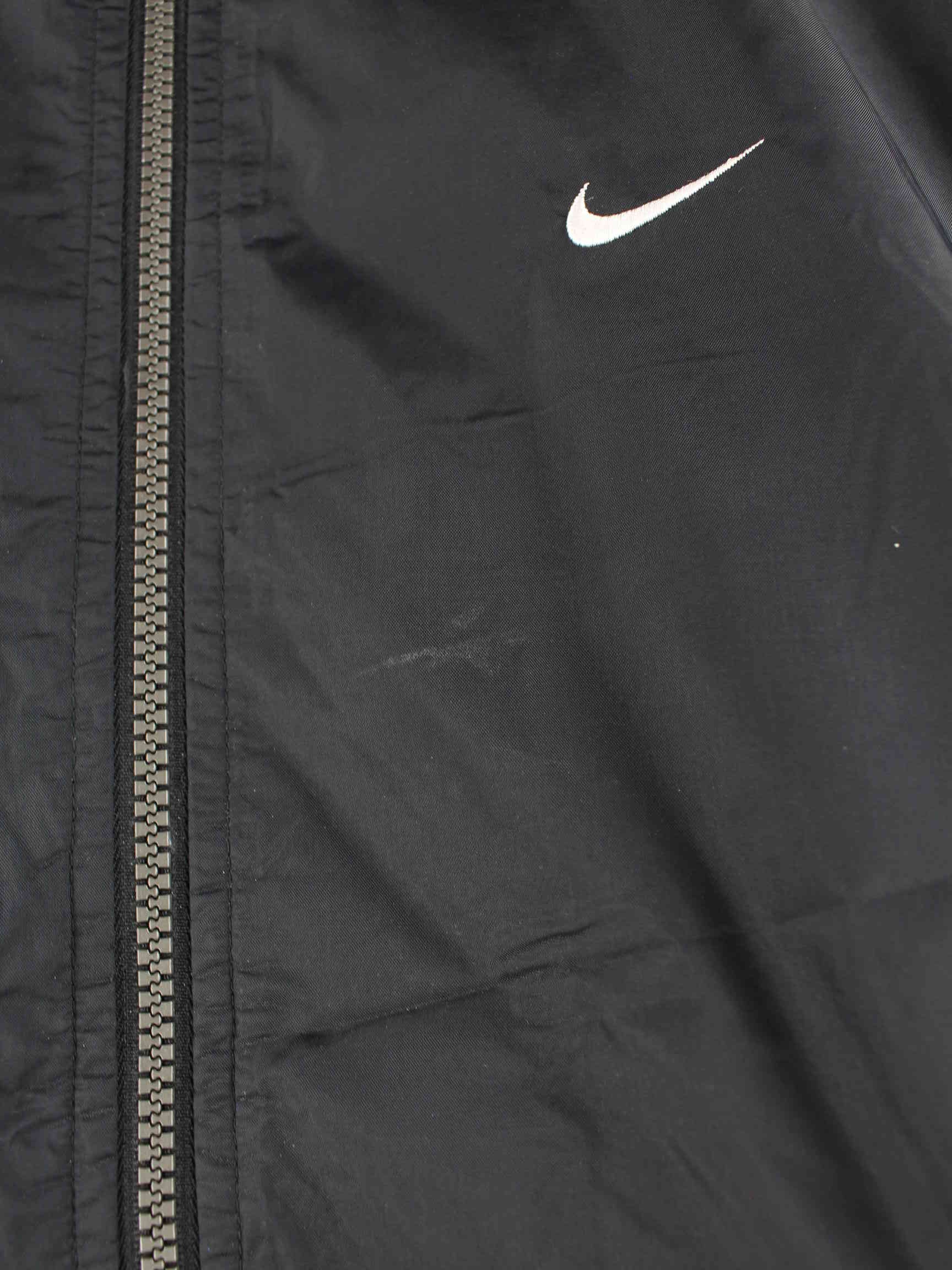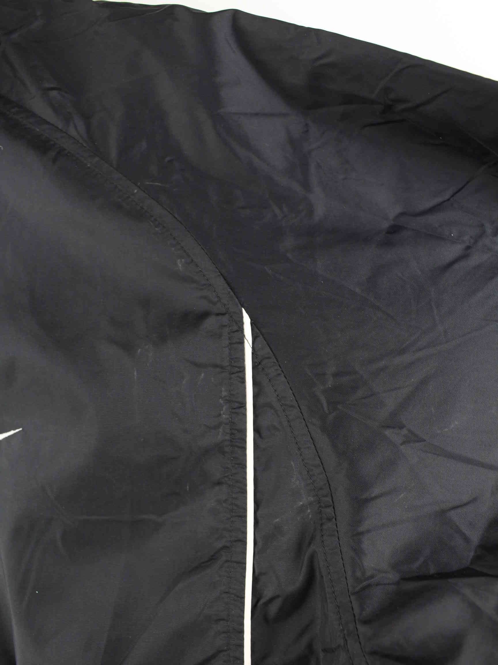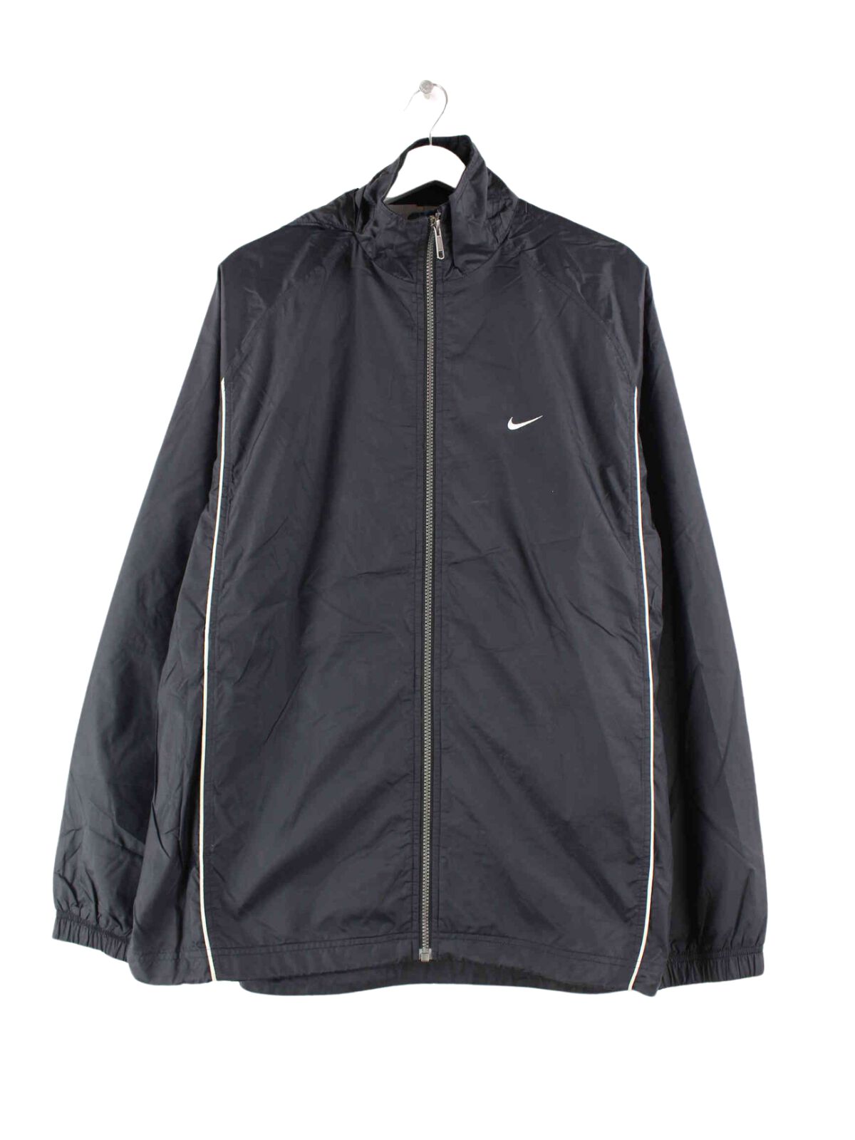 Schwarzer Windbreaker der Marke Nike aus Anfang der 2000'er in Größe XL. Er ist aus Synthetik produziert. Den Zustand würden wir als 'In Ordnung' bezeichnen (vergl. Bilder).