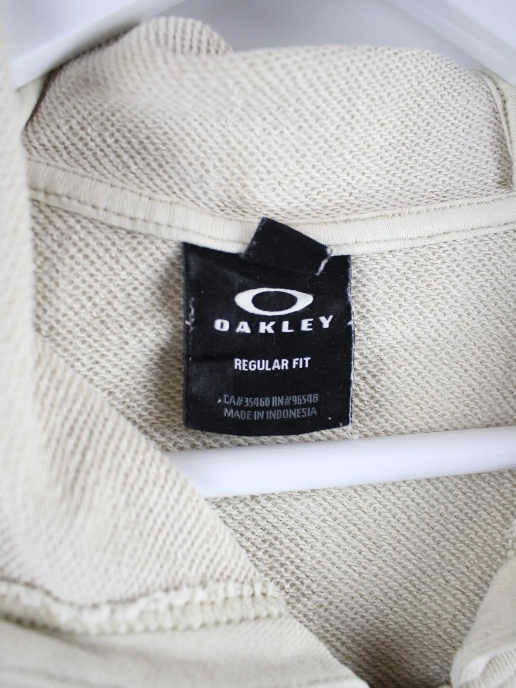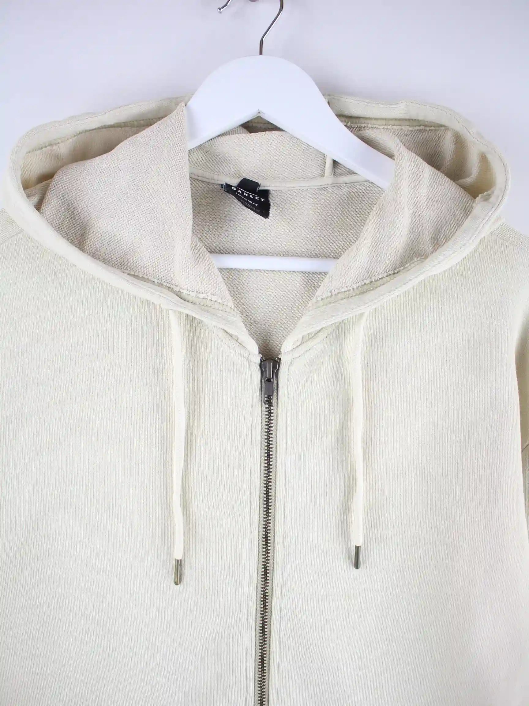 Beigefarbener Hoodie mit langem Reißverschluß vom Brand Oakley in Größe 3XL. Er ist aus einer Baumwollmischung produziert. Den Zustand würden wir als 'In Ordnung' bezeichnen (vergl. Bilder).