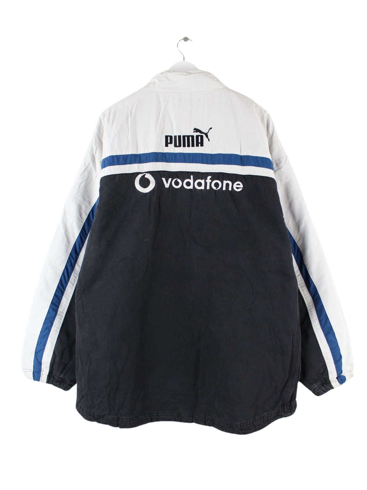 Schwarze Jacke mit gestickten Motiven der Marke Puma in Größe XXL. Sie ist aus Synthetik gemacht und in gutem Zustand zu bekommen.