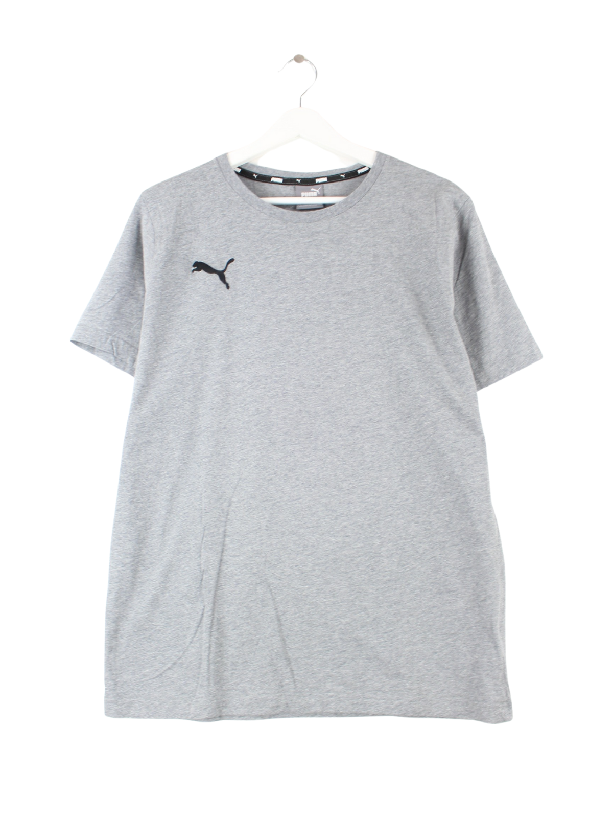 T-Shirt der Marke Puma mit Stick in Größe L. Es ist aus Baumwolle und in Grau in Stock.