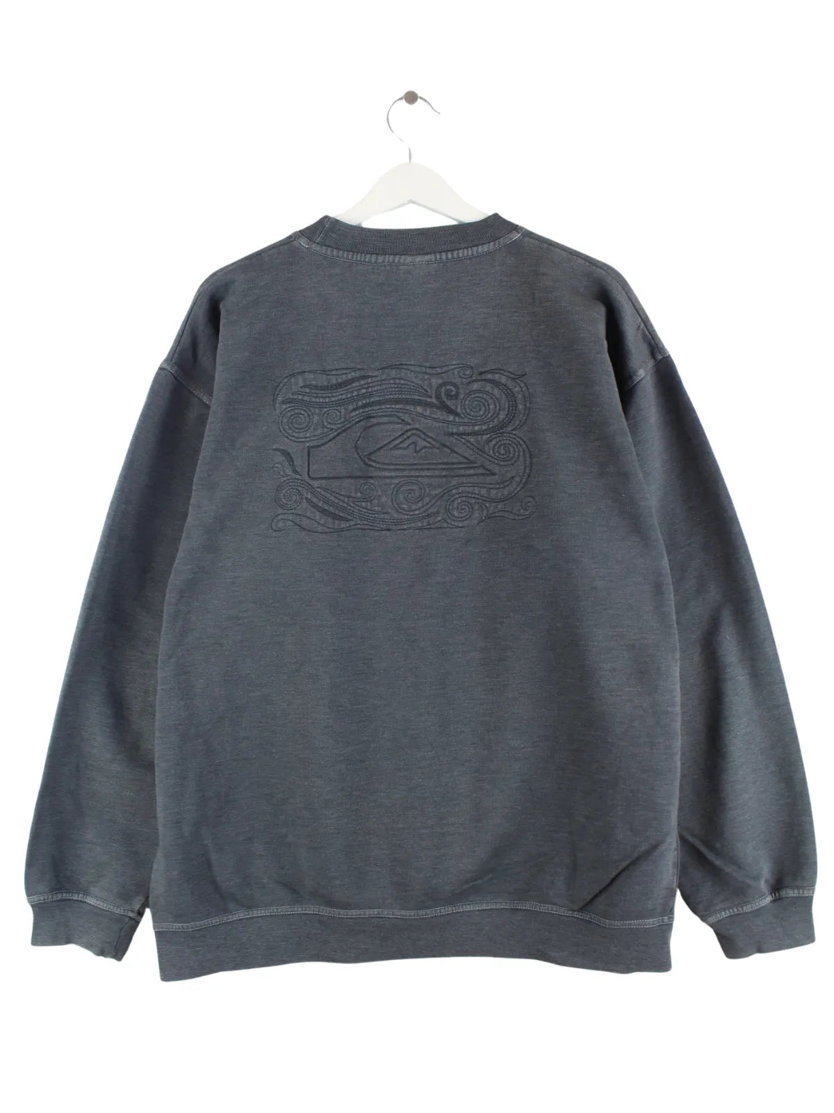 Sweater der Brand Quiksilver mit Stickereien in Größe XL. Er ist aus einer Baumwollmischung produziert und in Grau im Bestand.