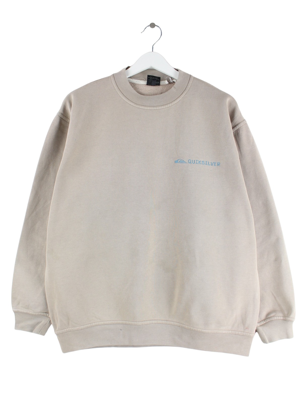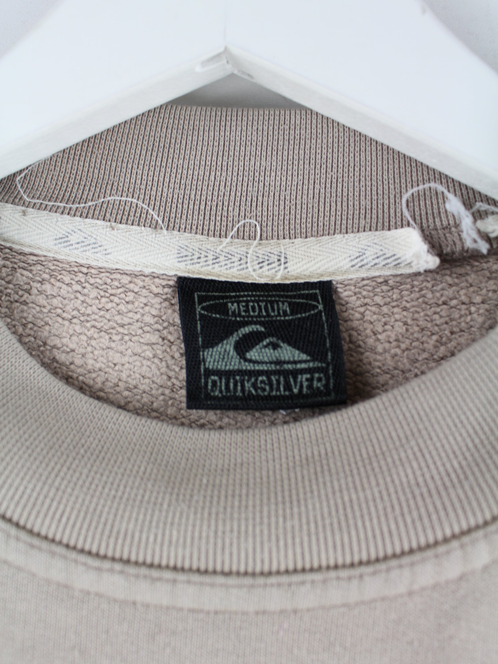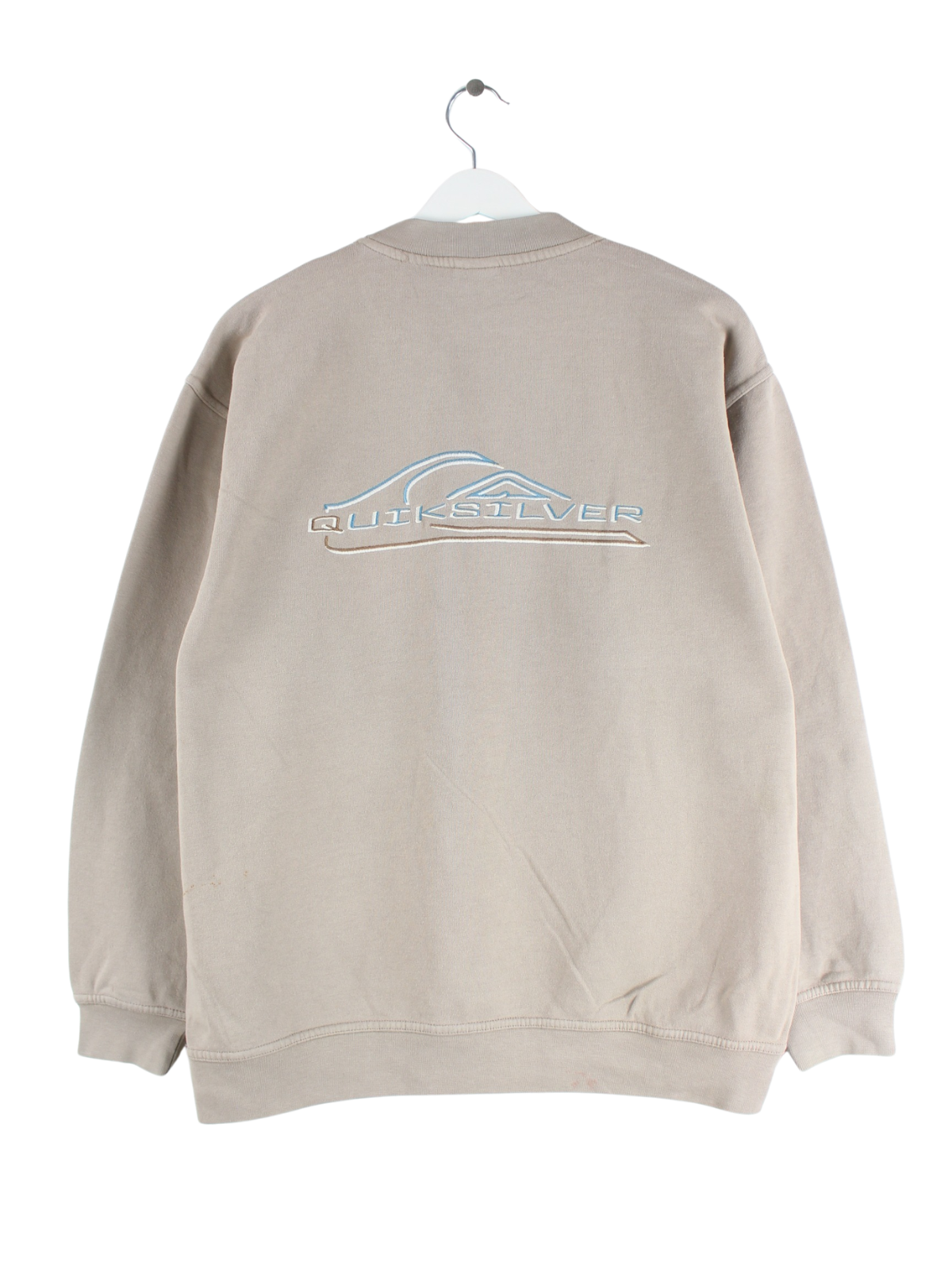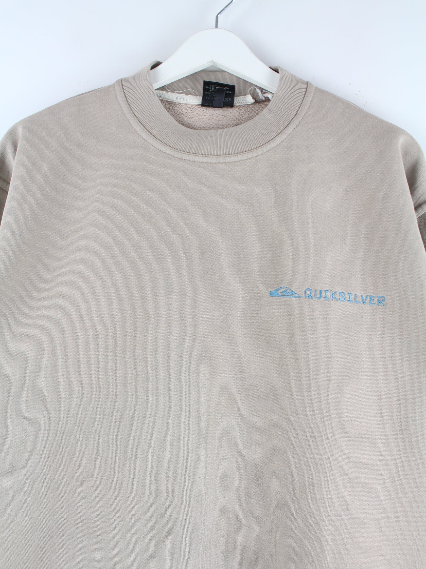 Sweater der Brand Quiksilver mit Stickereien in Größe M aus den 90'ern. Er ist aus einer Baumwollmischung gefertigt und in Beige zu haben.