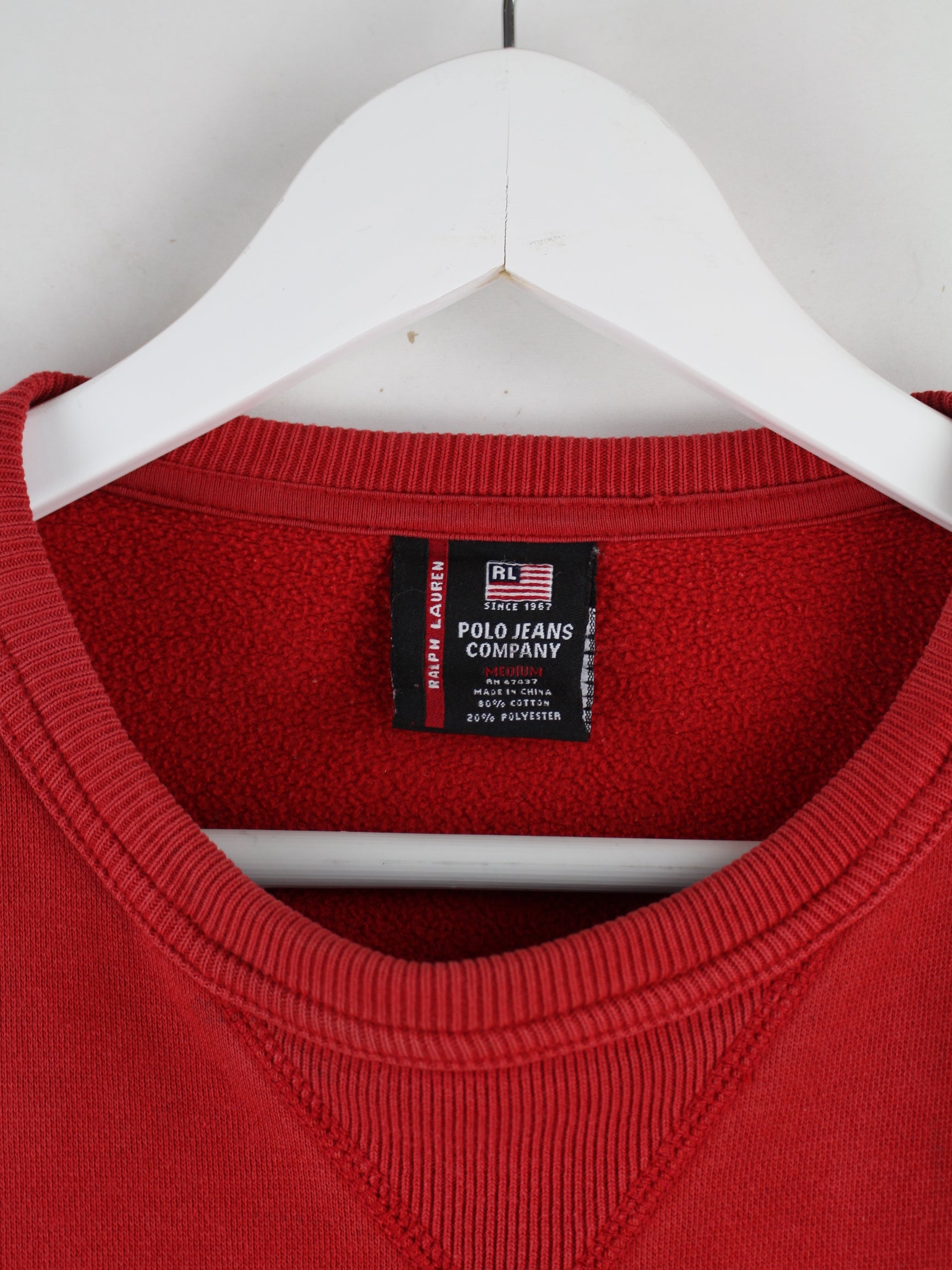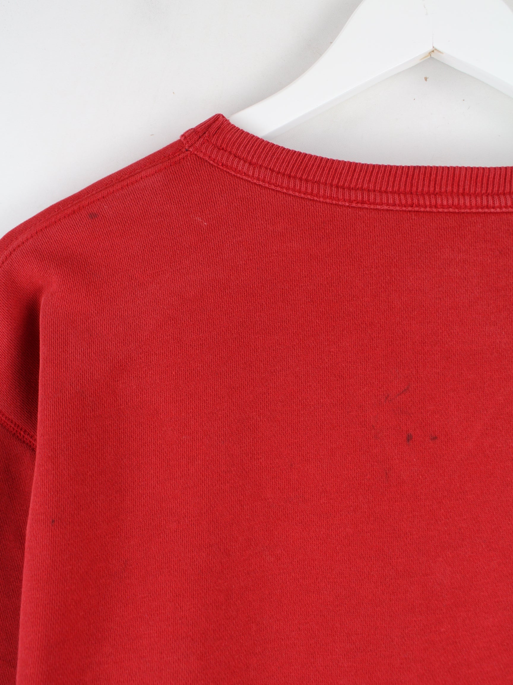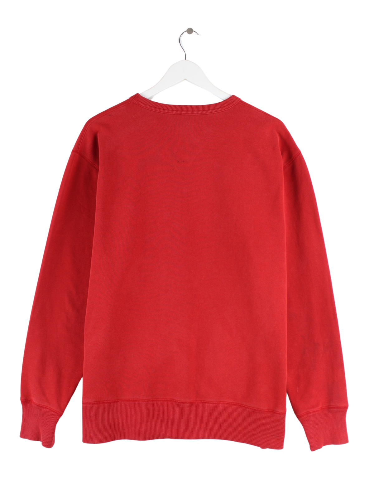 Roter Sweater mit Stickereien von Ralph Lauren in Größe L. Er ist aus einer Baumwollmischung produziert. Den Zustand würden wir als 'In Ordnung' bezeichnen (vergl. Bilder).