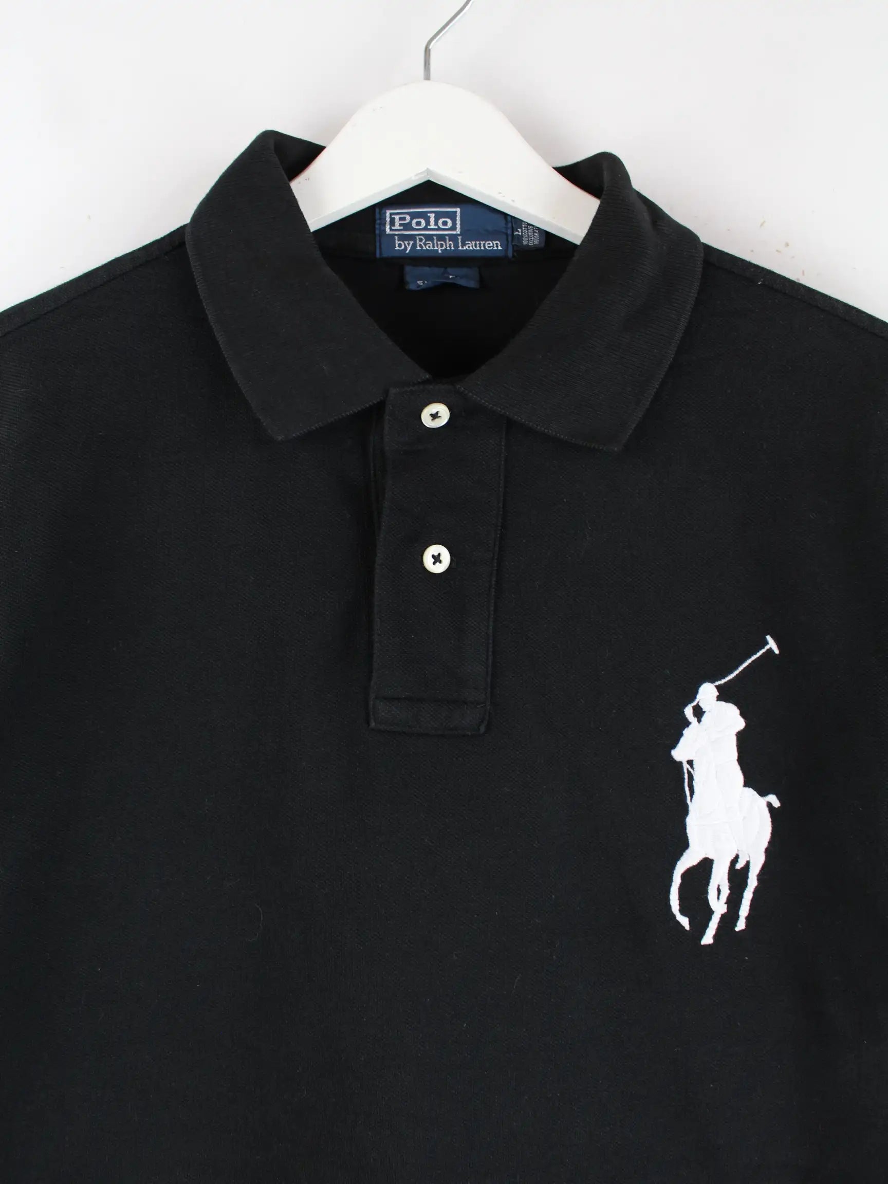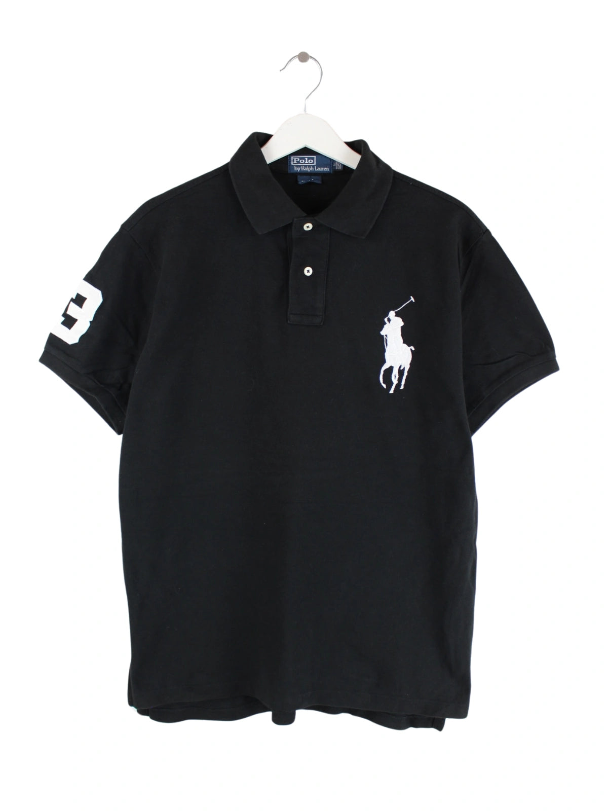 Ralph Lauren 90s Vintage Big Logo Slim Fit Polo Schwarz L