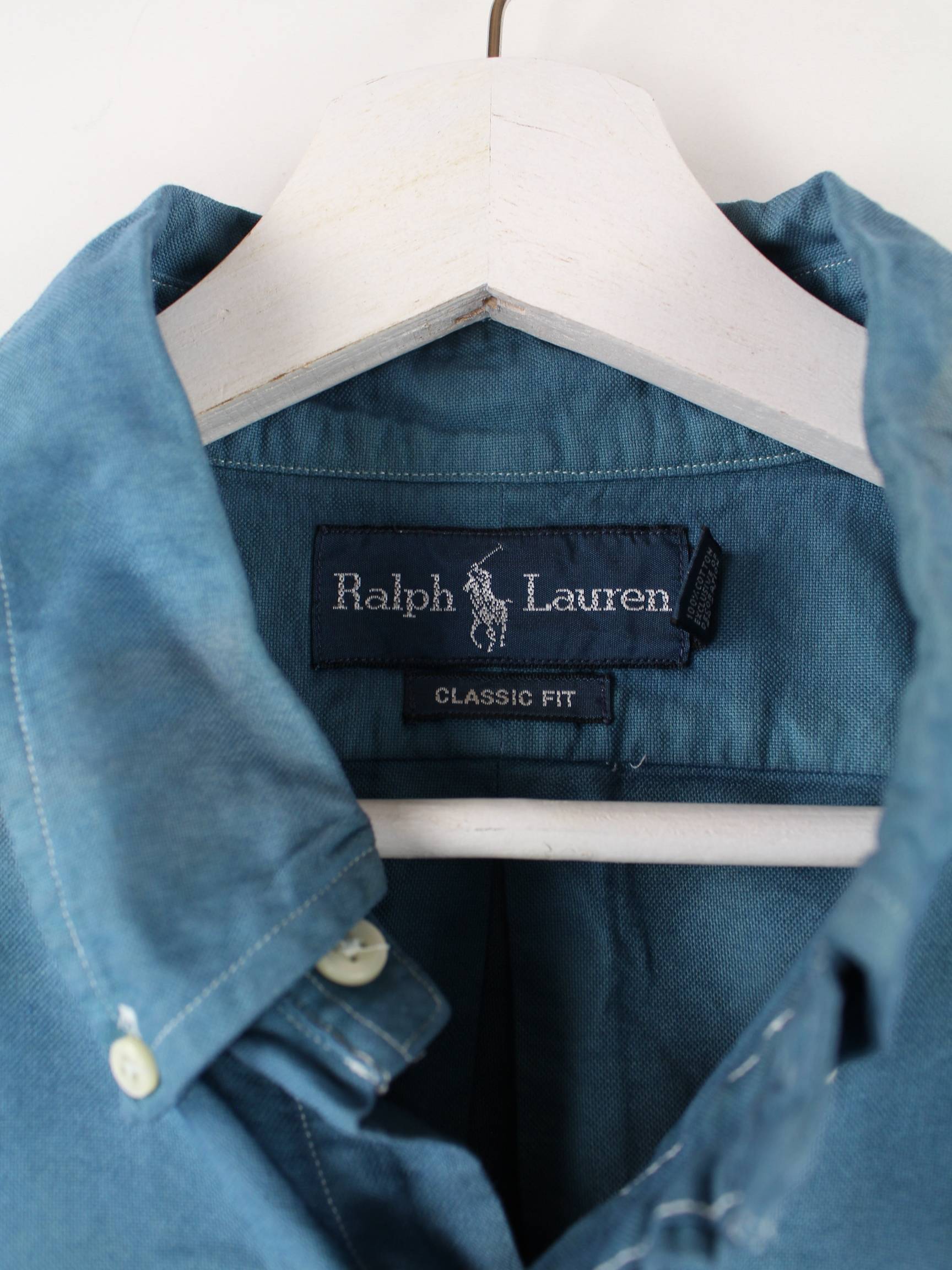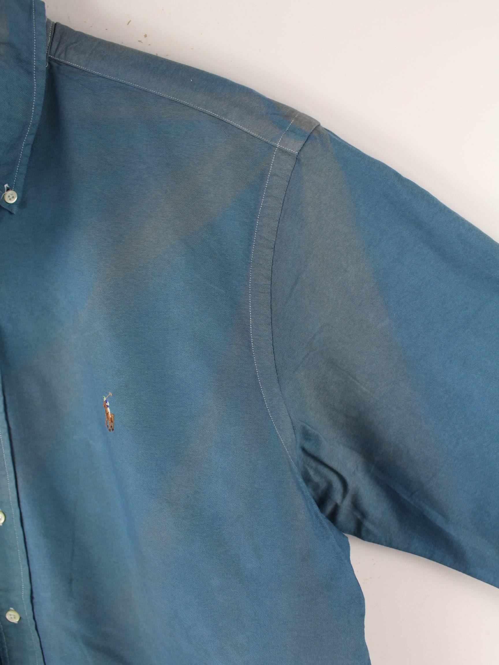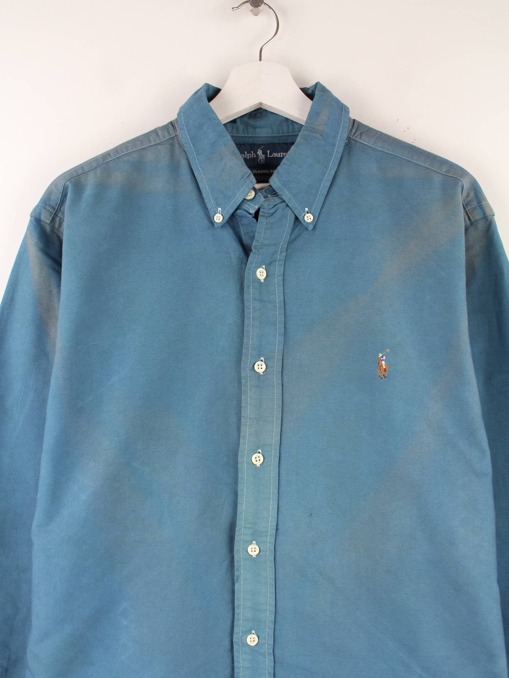 Hemd des Labels Ralph Lauren in Größe XL aus den 90'ern. Es ist aus Baumwolle hergestellt und in Blau im Bestand.