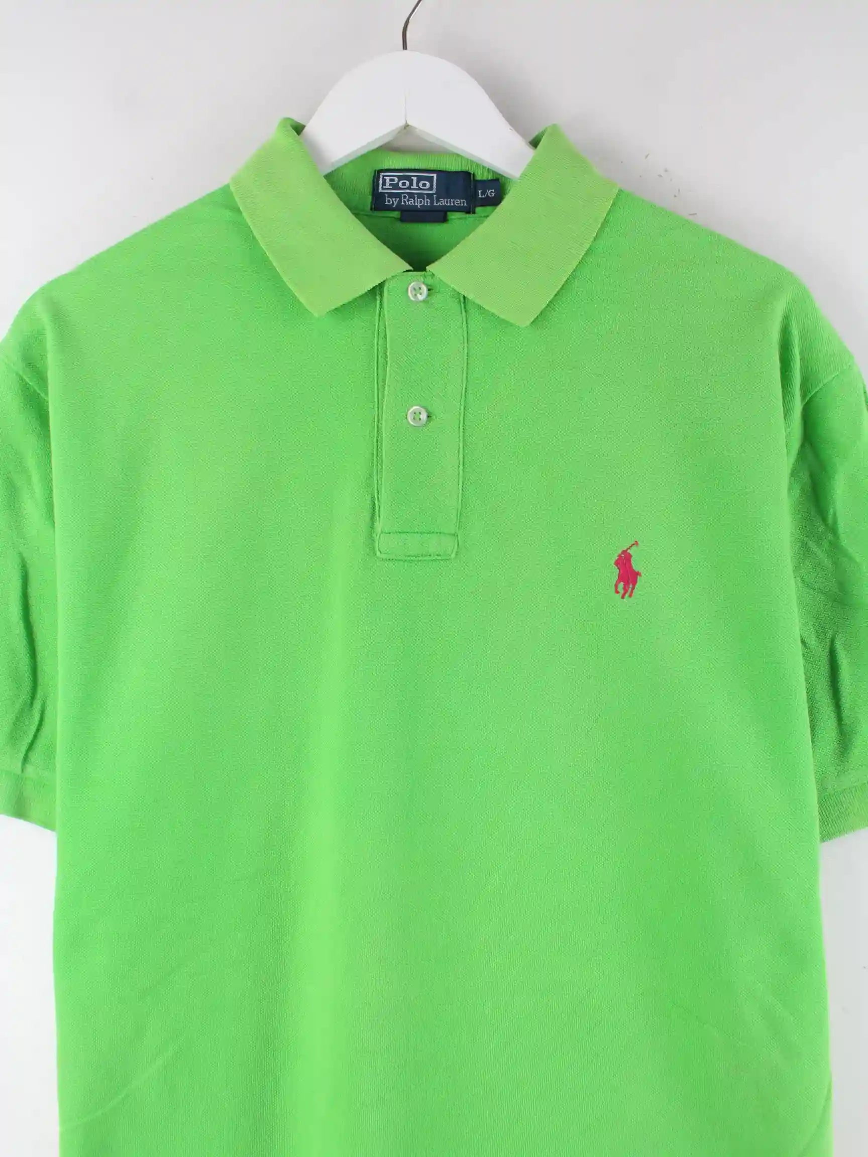 Grünes Poloshirt der Brand Ralph Lauren aus den 90'ern in Größe L. Es ist aus Baumwolle hergestellt und in sehr gutem Zustand im Angebot.