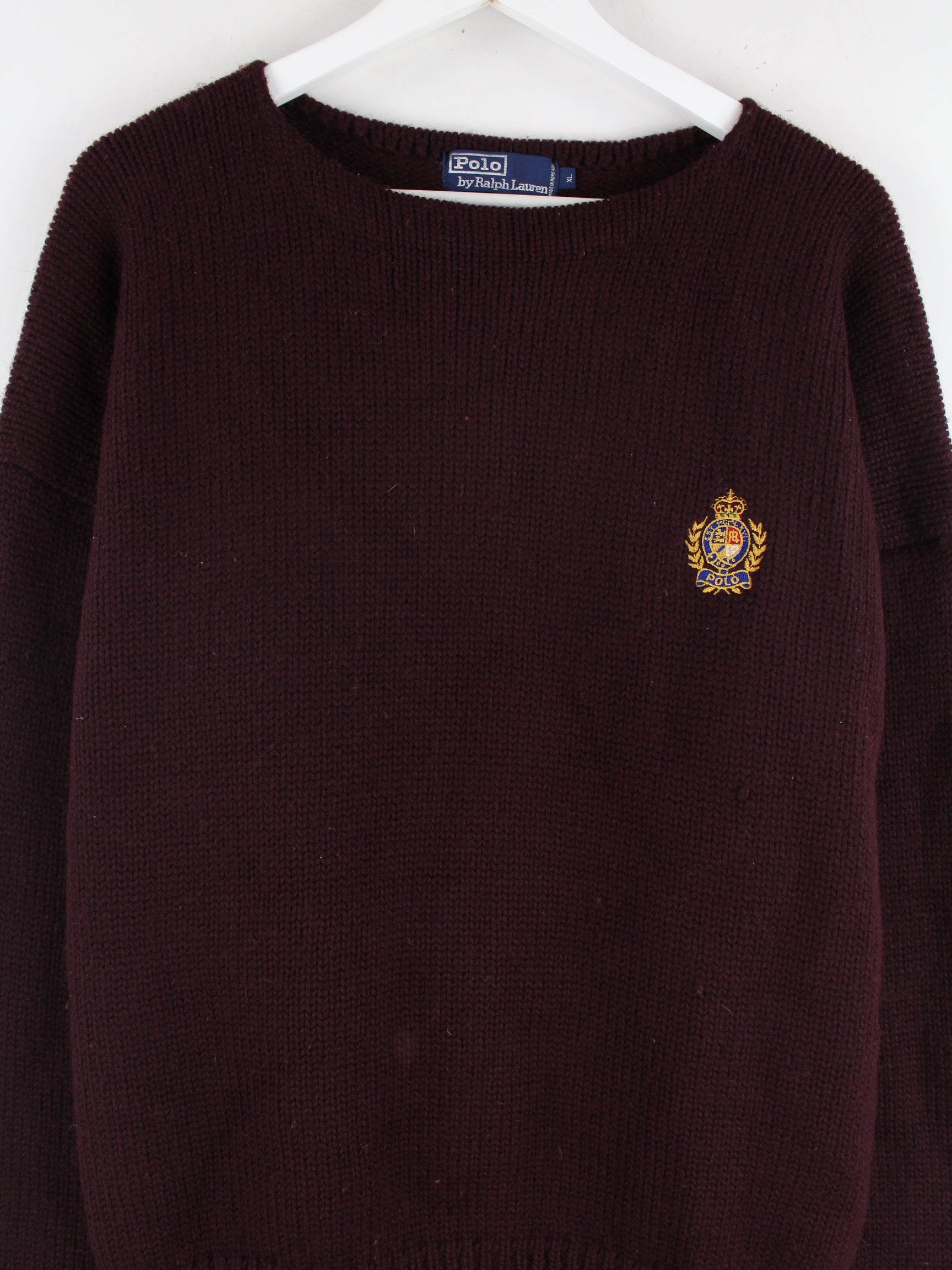 Pullover vom Brand Ralph Lauren in Größe XL aus den 90'ern. Er ist aus Wolle produziert und in Rot vorrätig.
