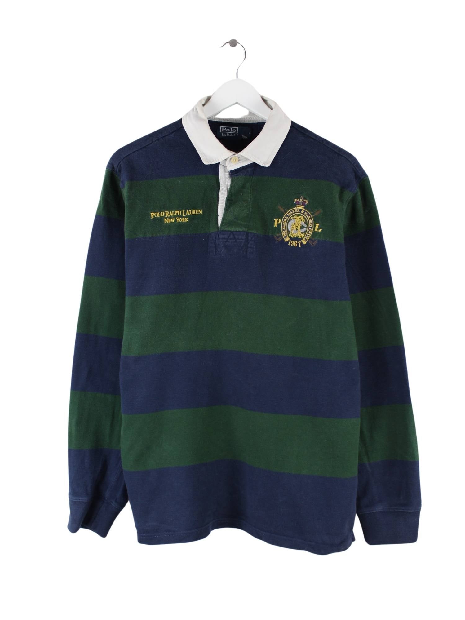 Ralph Lauren 90s Vintage Striped Rugby Polo Langarm Polo Blau/Grün L
