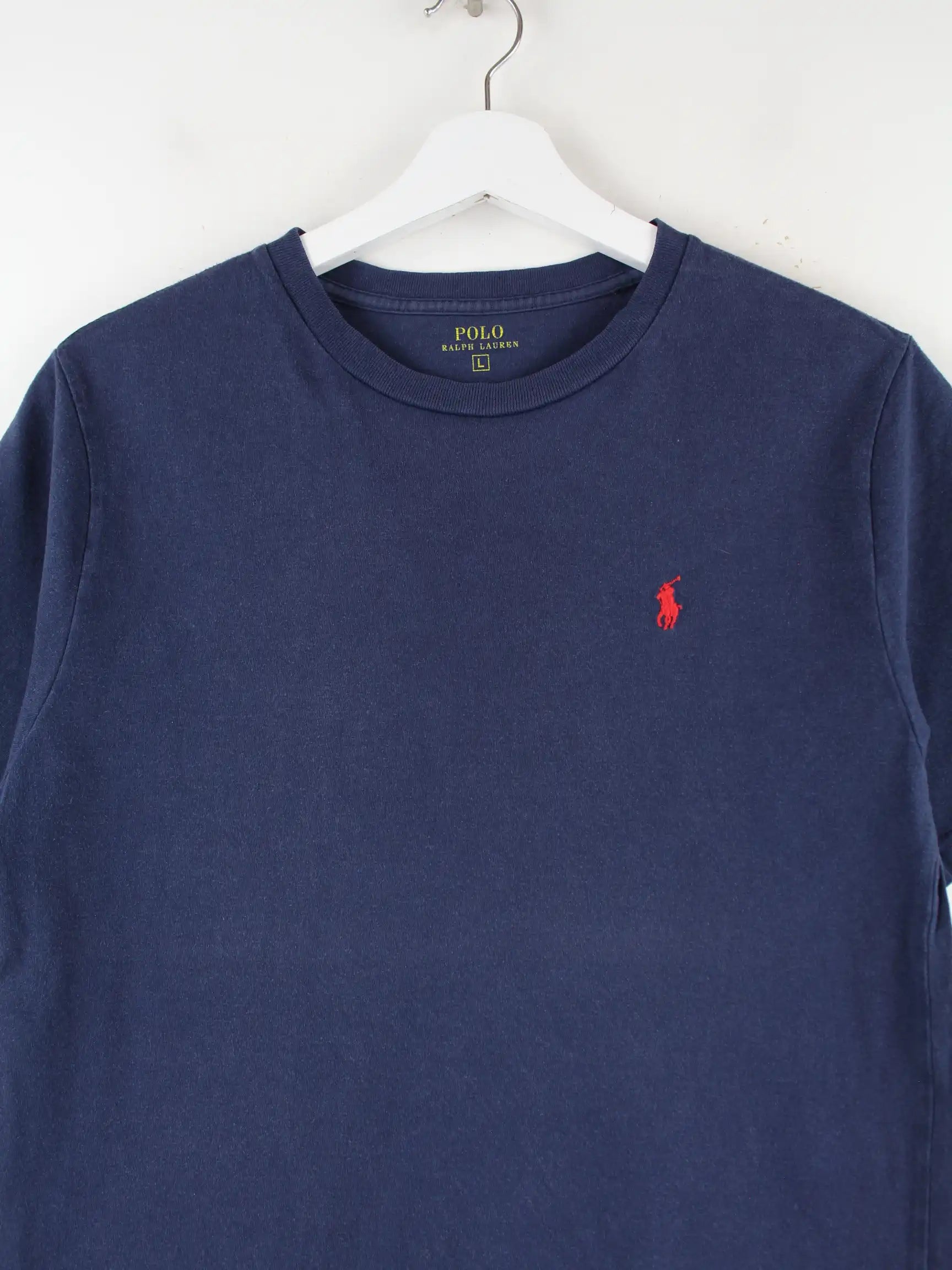 T-Shirt vom Label Ralph Lauren in Größe L. Es ist aus Baumwolle produziert und in Blau im Bestand.