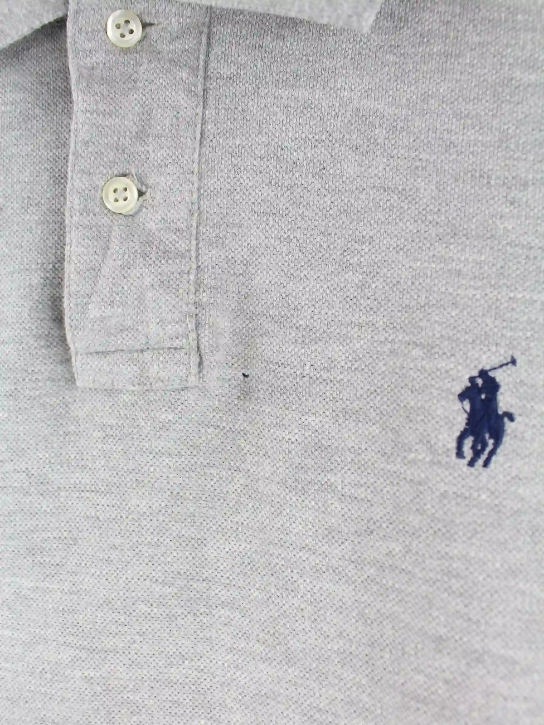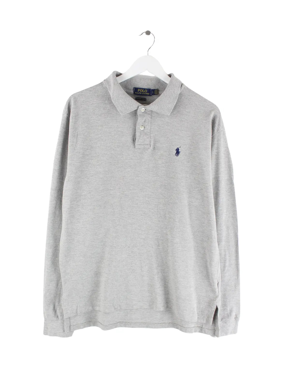 Graues Poloshirt vom Label Ralph Lauren in Größe L. Es ist aus Baumwolle gefertigt und in gutem Zustand bei uns vorrätig.