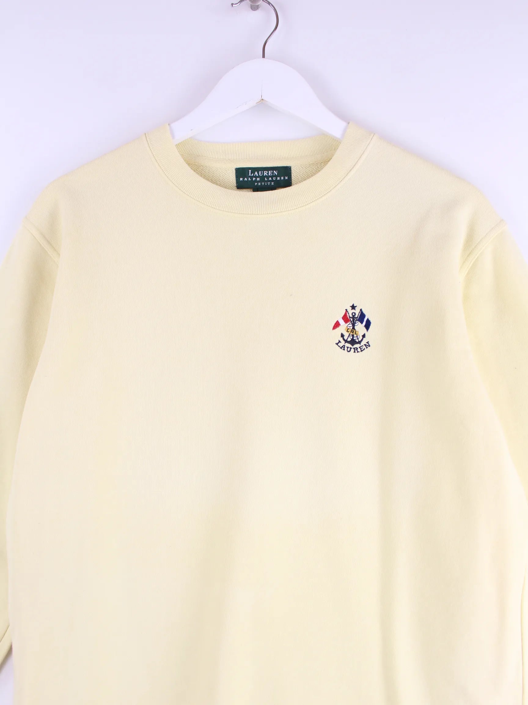 Sweater des Labels Ralph Lauren in Größe S. Er ist aus einer Baumwollmischung und in Gelb im Bestand.