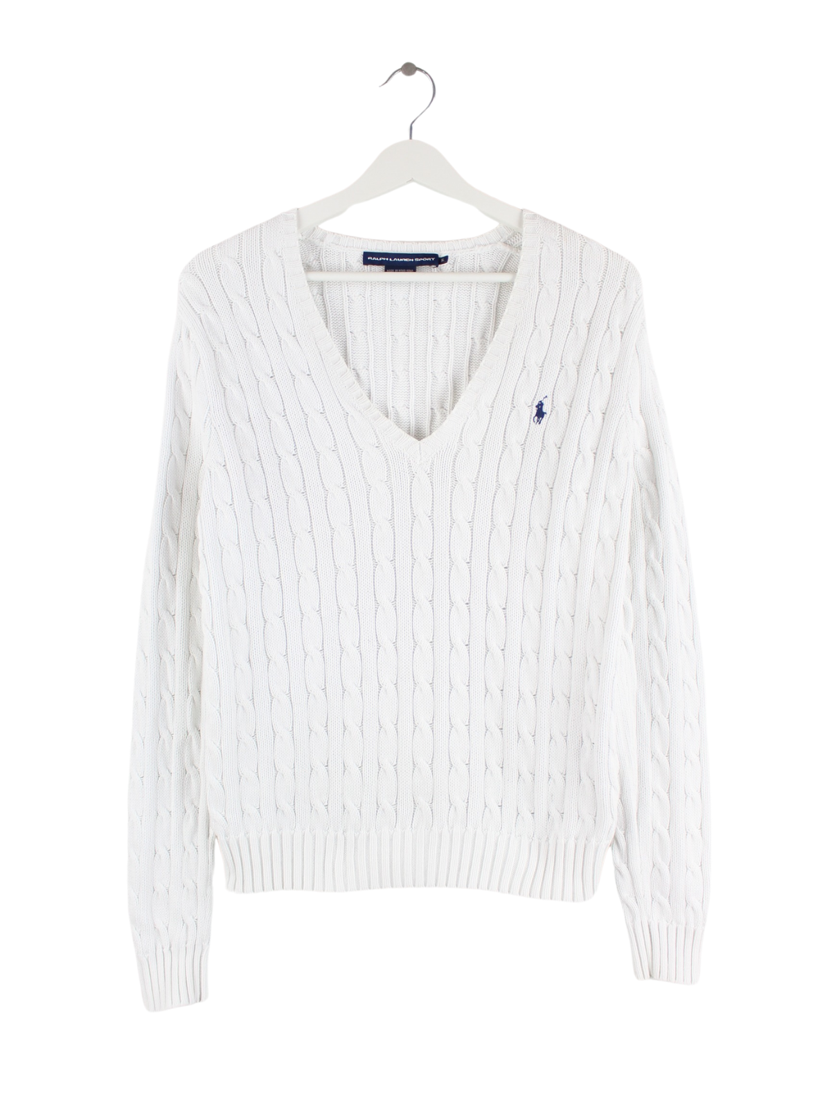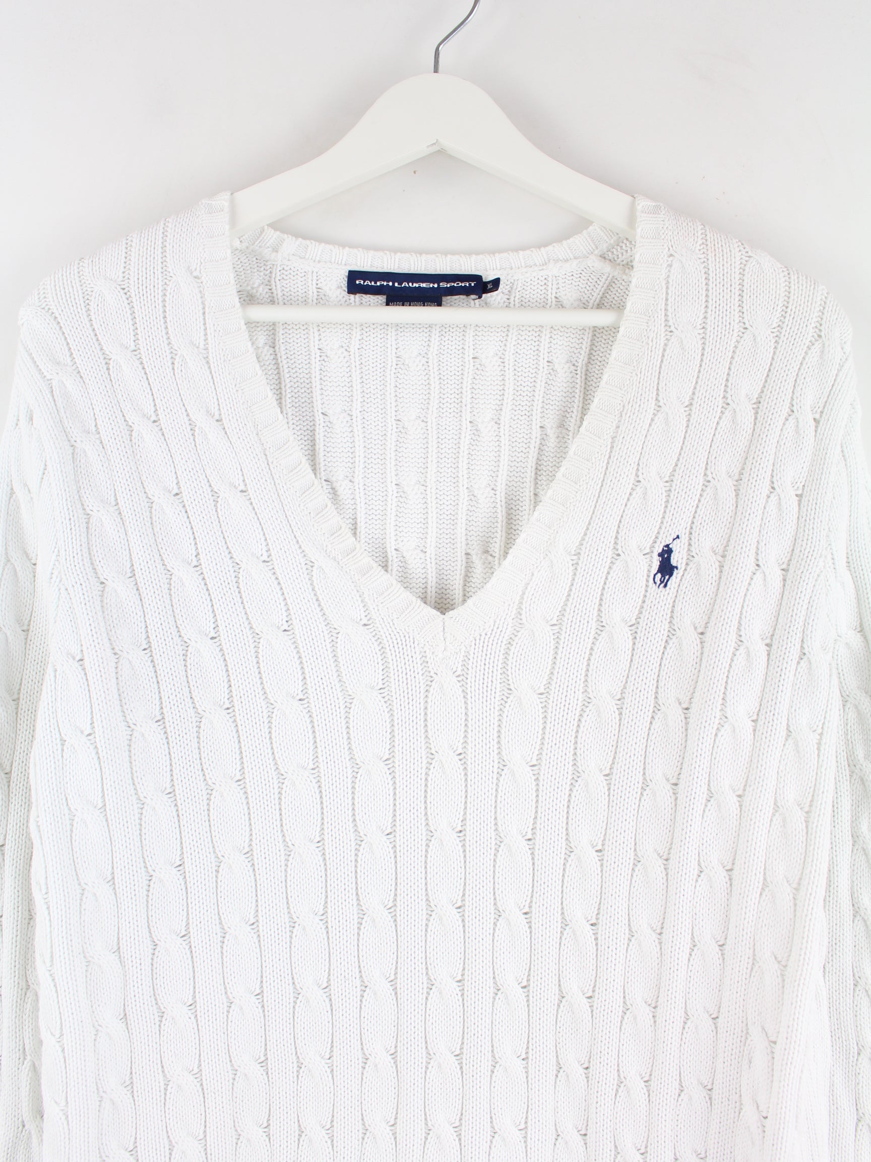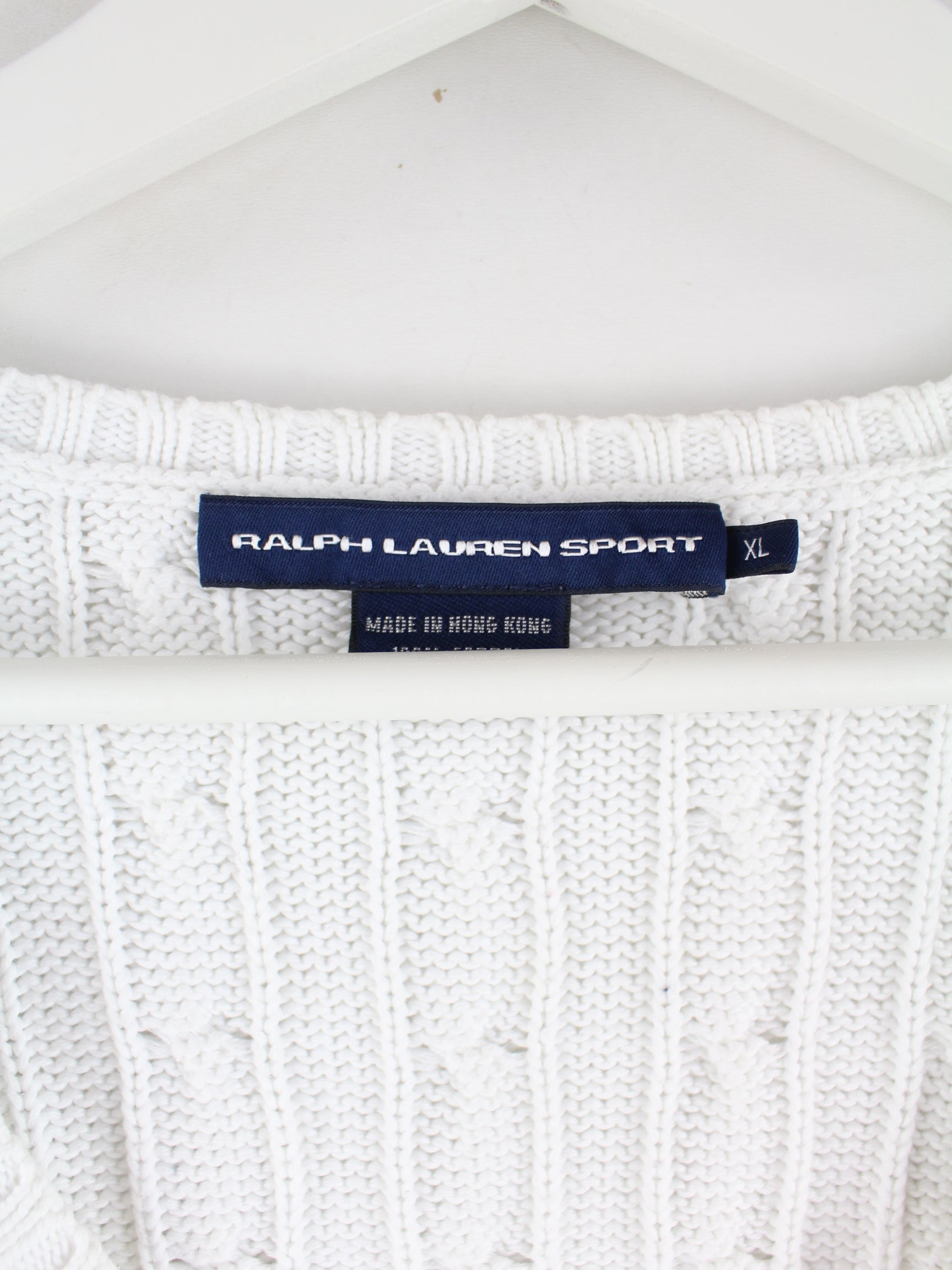 Weißer Pullover von Ralph Lauren in Größe XL. Er ist aus Baumwolle hergestellt und in sehr gutem Zustand in Stock.